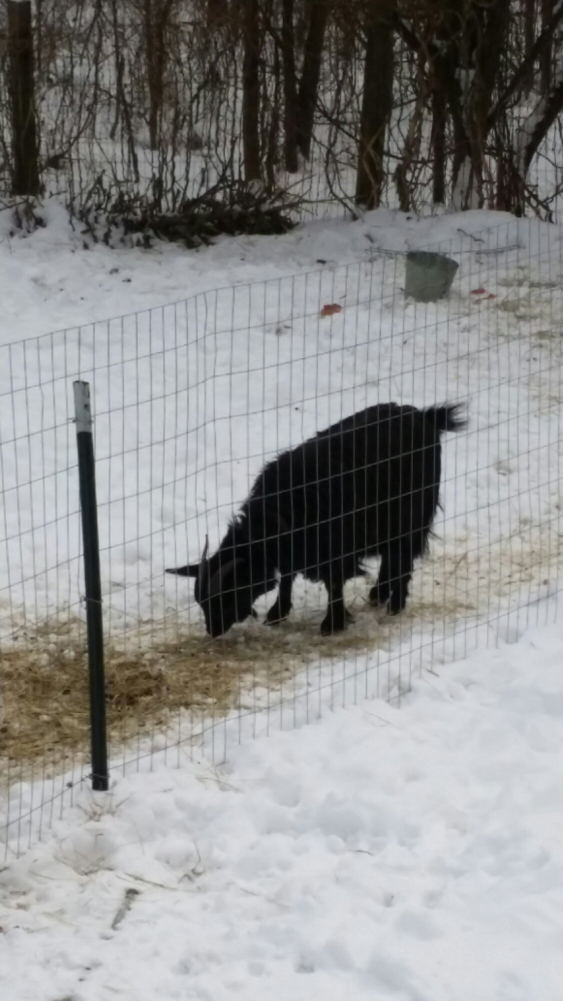 The goats are thrilled that I tossed some sour oranges and wrinkly apples in there with them all. Bessie just snorted at my offering.