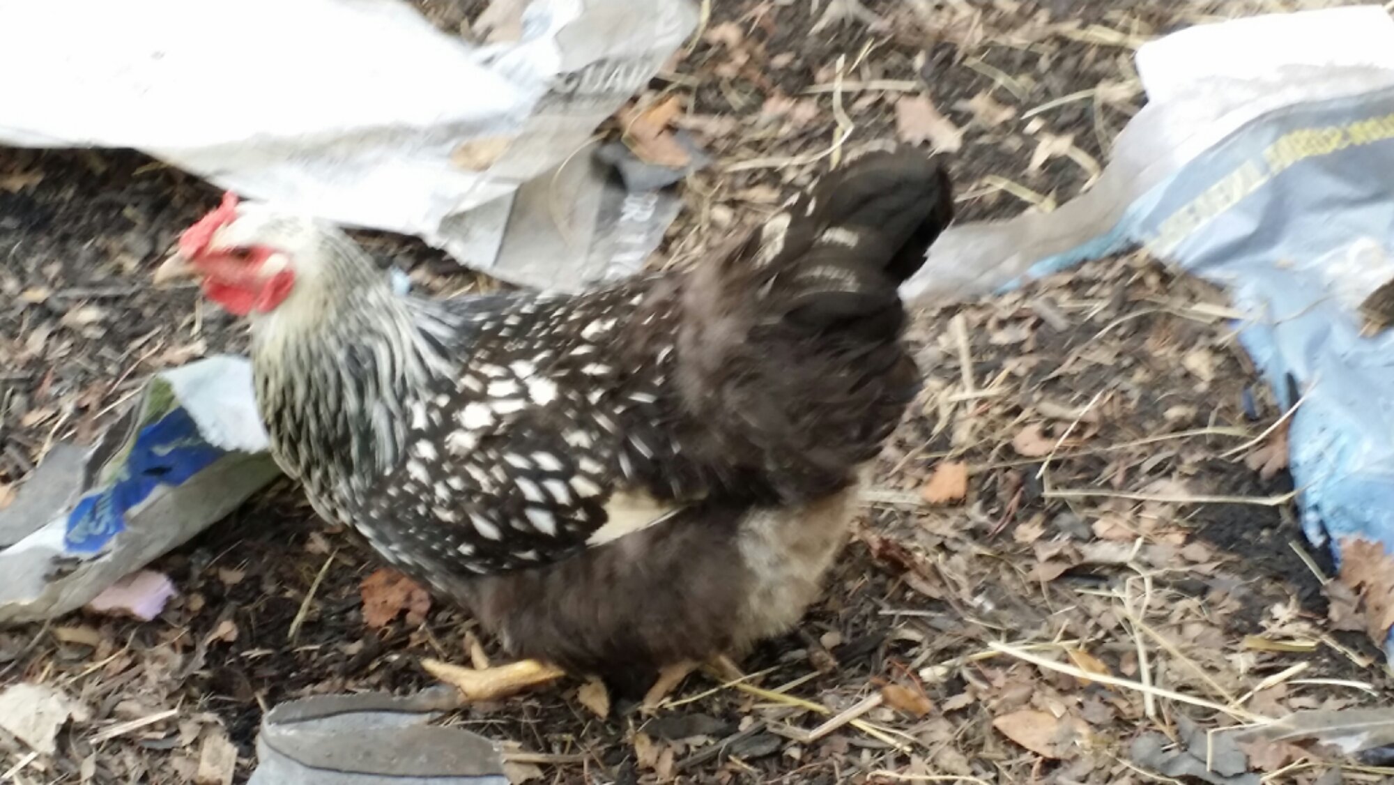 This is the adult hen pecking around in the mulch.