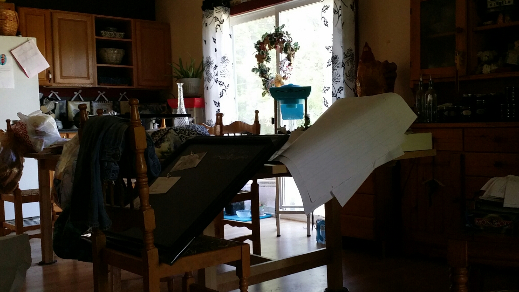 My beautiful kitchen table looks like this because it is covered with homeschool and wedding and various other items (I am not quite sure how they got there).