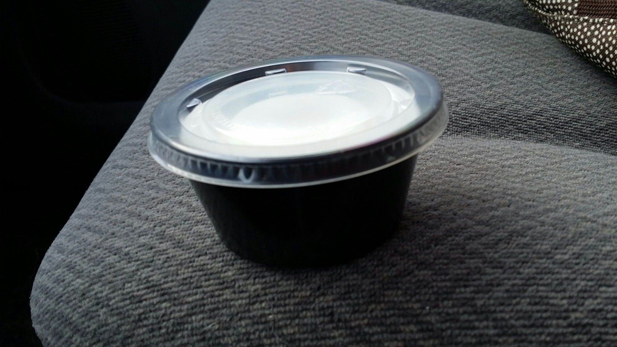 Part of my order was a side of sour cream. When I got my bag and opened it going down the road this is what I found: