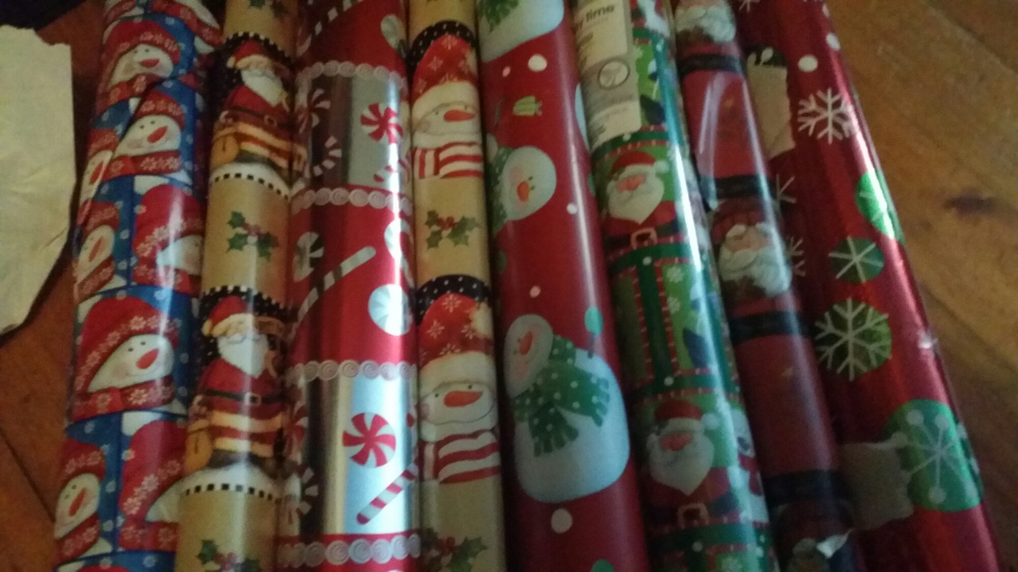 I took quick stock of my gift wrap situation and picked a color theme for it for this year (snowmen, Santa, and traditional red/green color scheme).