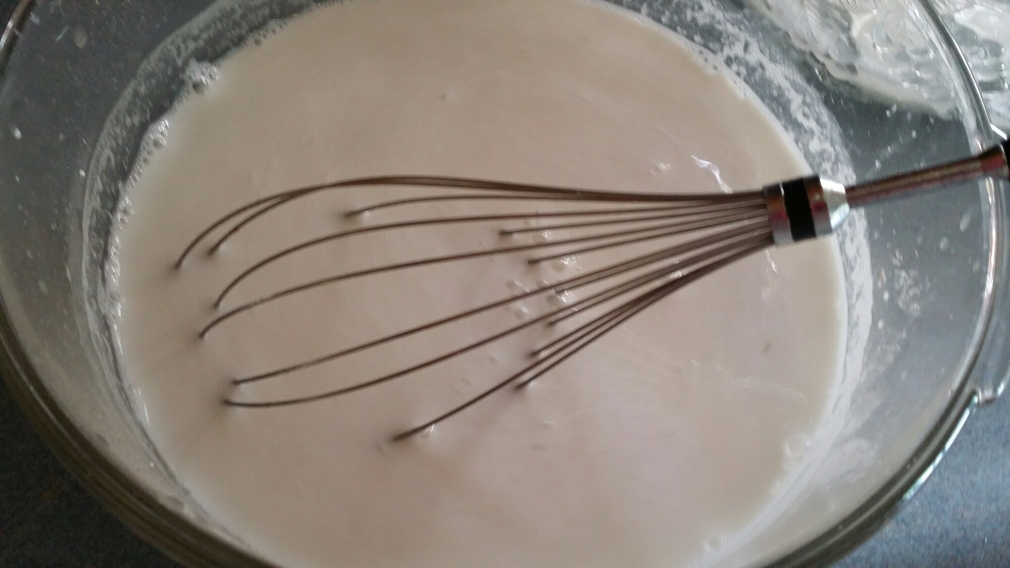 Add a cup of lime to a glass bowl (I have small bowls so I had to use three and divide the lime among the bowls) and add a little water, whisking it together.