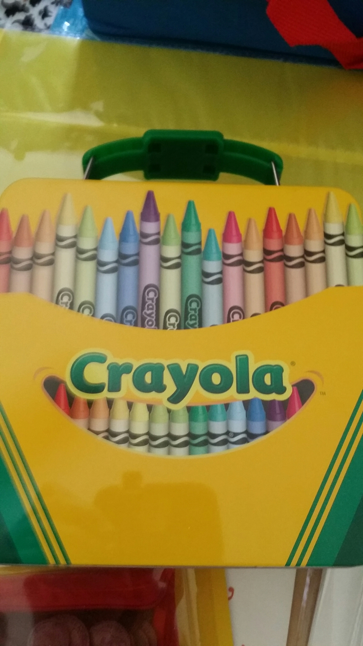 and this cool little metal lunchbox type of container which is the perfect size to hold the big pack of crayons so none get broken in transit!