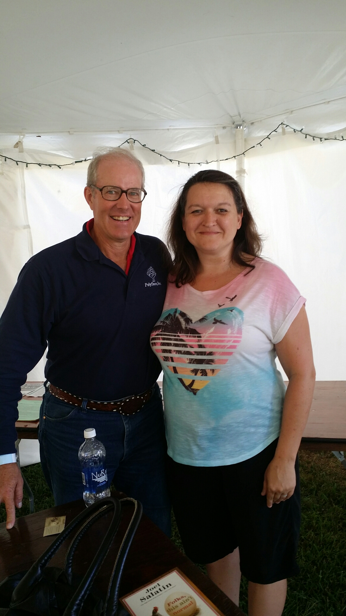 I met Joel Salatin. I bought one of his books ( the only one left on the table – thank goodness I got straight in line!!!), and he signed it. He wrote a message just to me in the book.