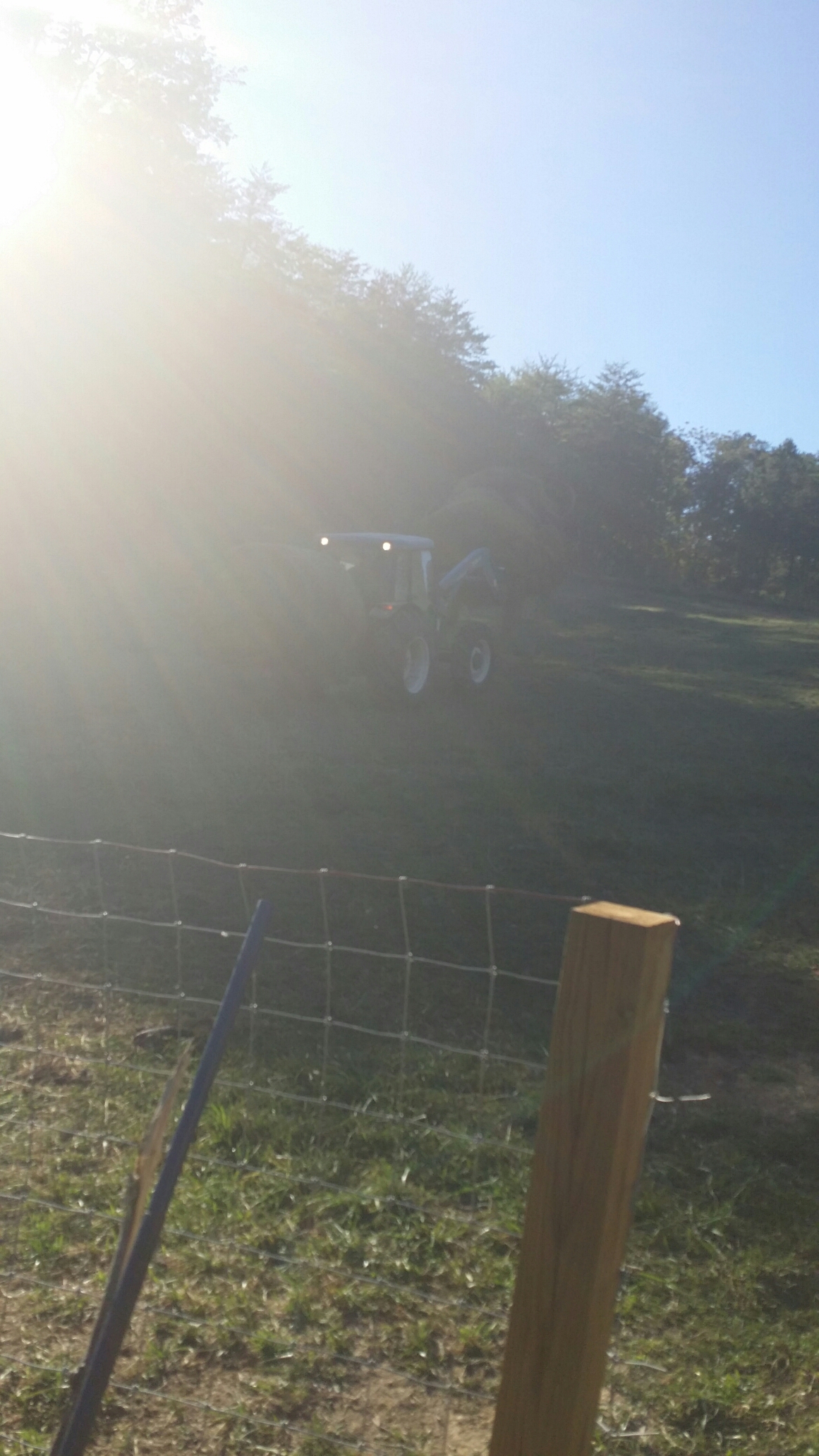 Mr. Manning showed up at my house today just as Teddy came in with boxes to pack up and move his things into Morgan’s Dad’s house (they’ve decided to stop going back/forth now) and just as I was going out the door to get Sahara from band. He was ready to bring the big round hay bales!