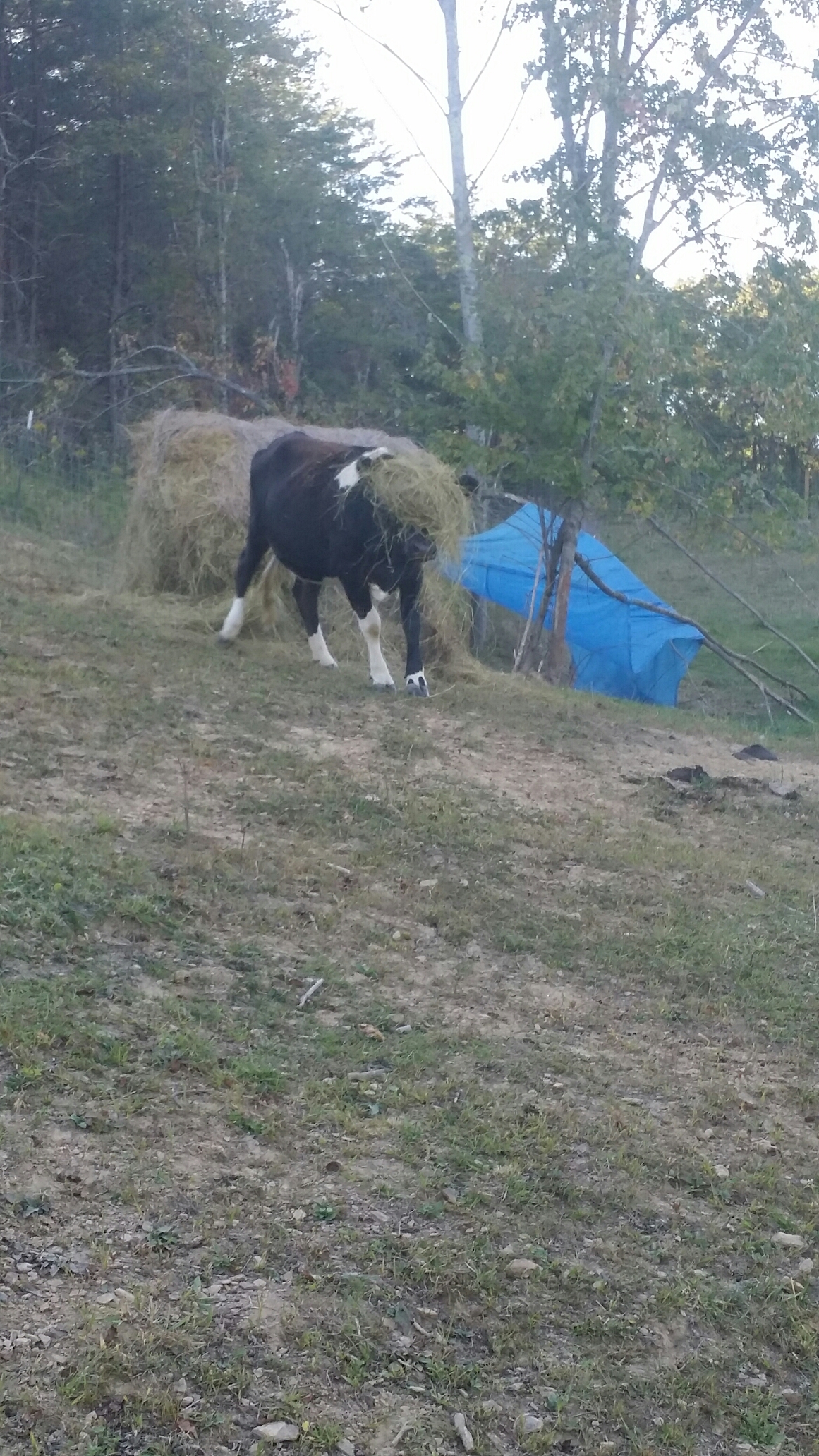 Bessie already was tied out due to getting out of the fence this morning, and Kristen’s Mom said she could bring Sahara home so I went down to the field to wait on the hay.