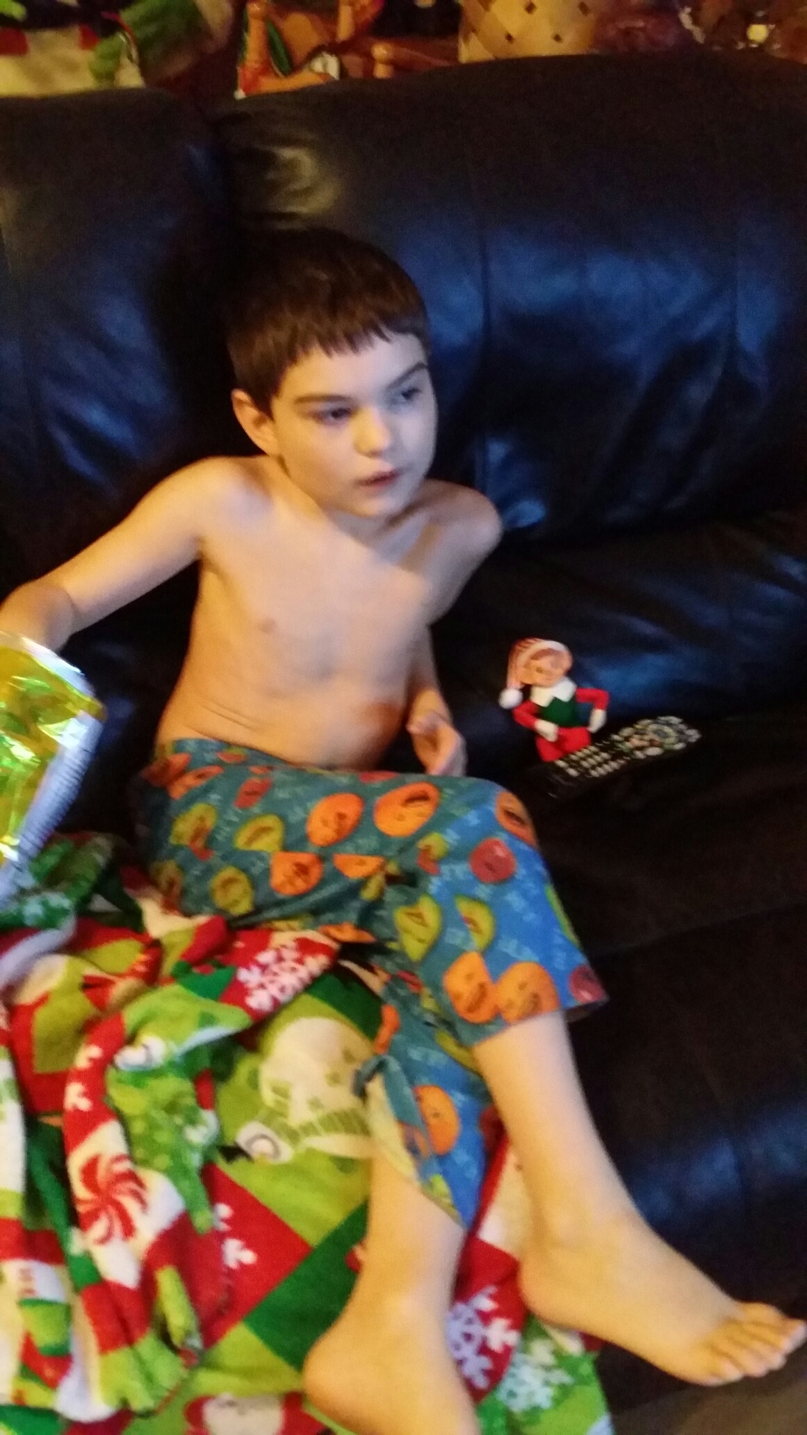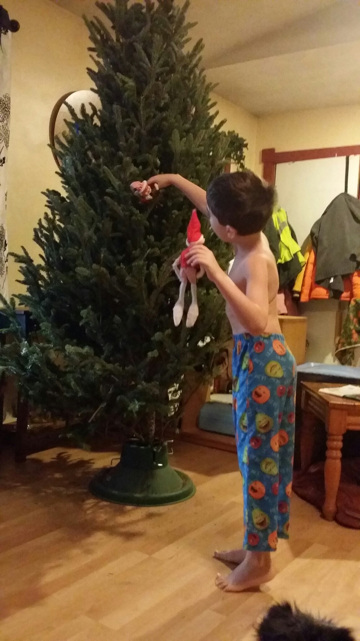 Later today, he caught them in the Christmas tree, helping the branches open up so we could decorate it.