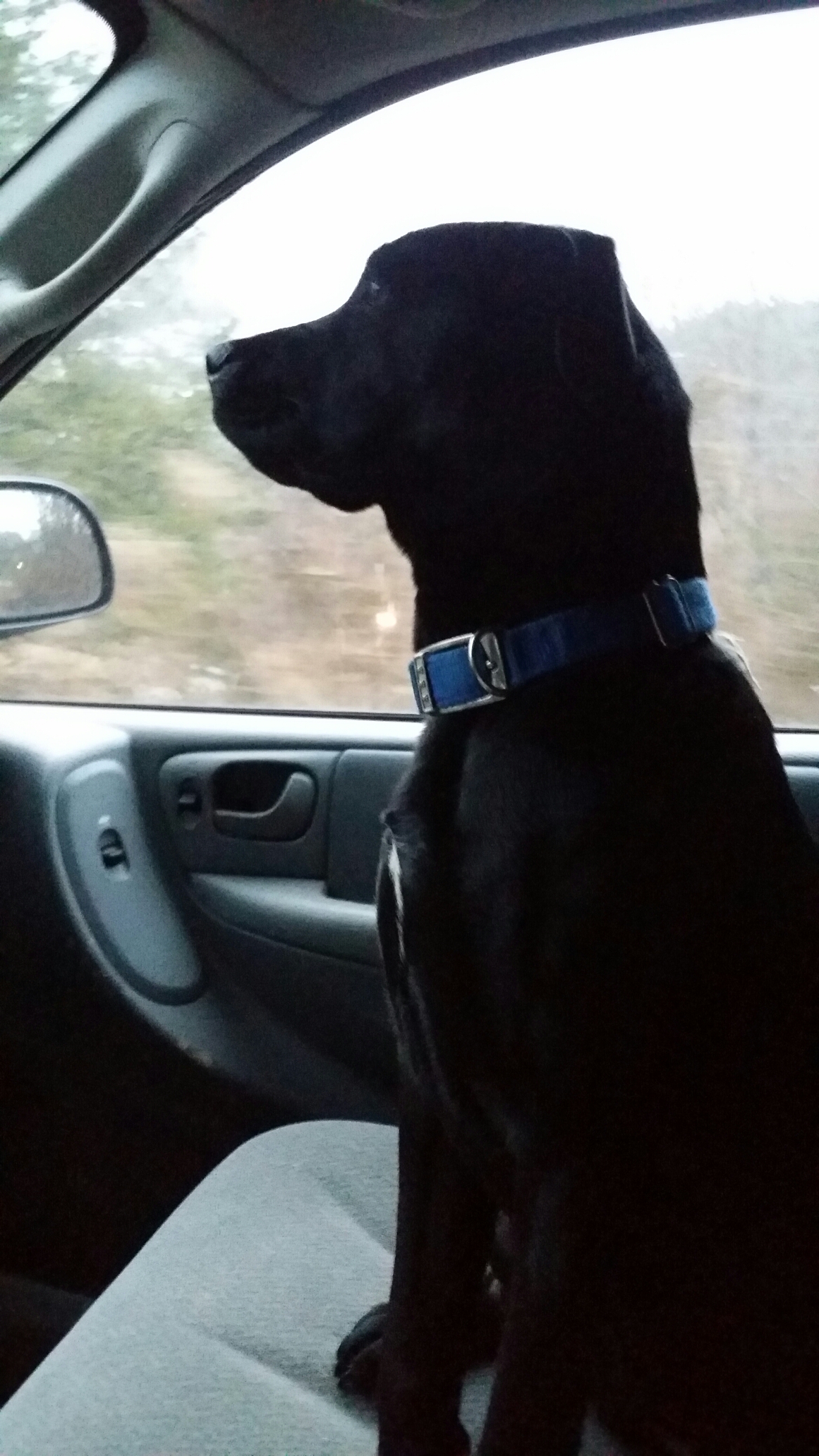 Puppers loves mornings because she loves car rides. We get Sahara to school and then drive around and feed Bessie, Beef, the Terrible Twosome, chickens, and the turkey. She especially loves extra long car rides. This morning she was thrilled because we had to go one town over to the bank before work.
