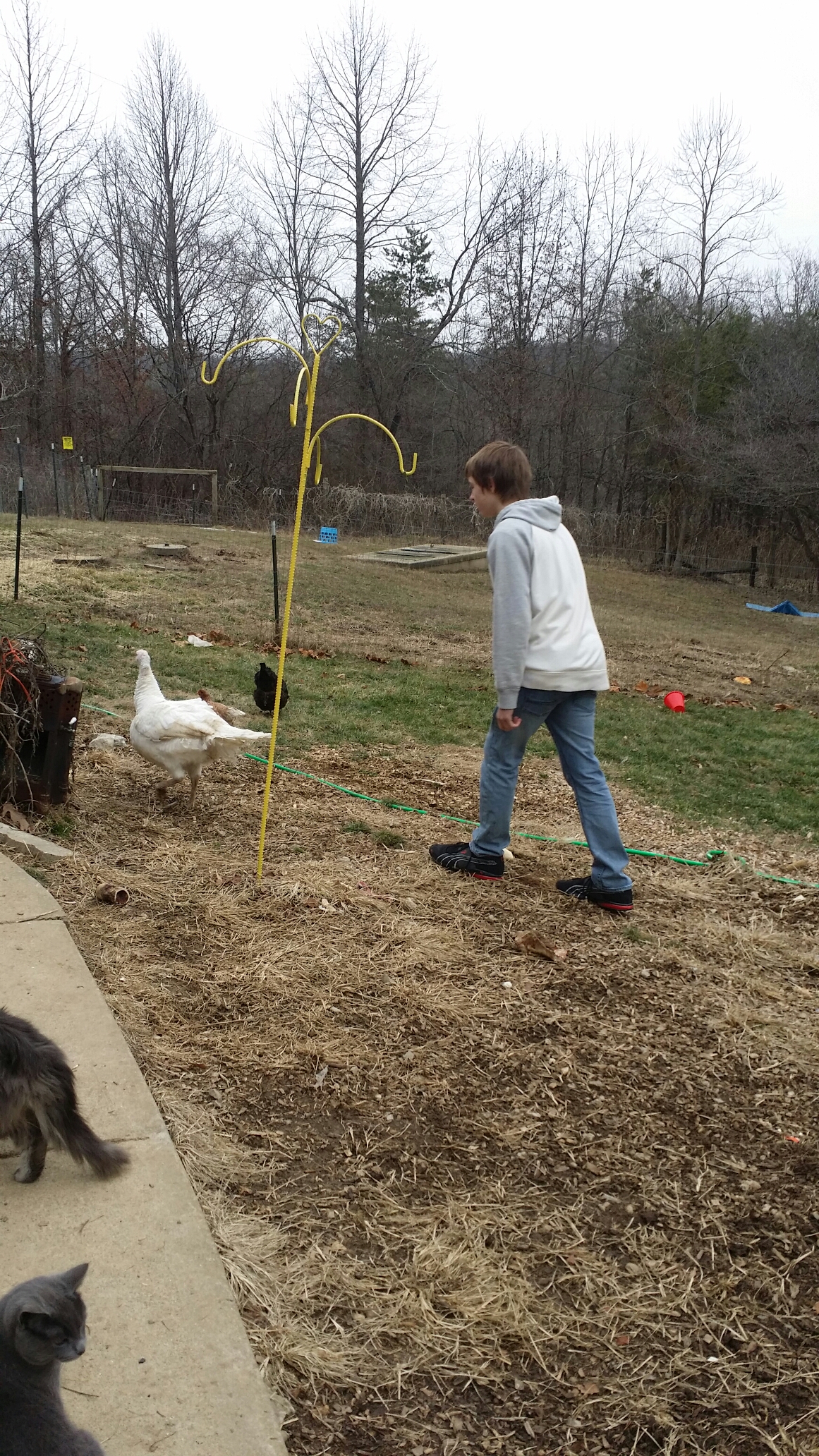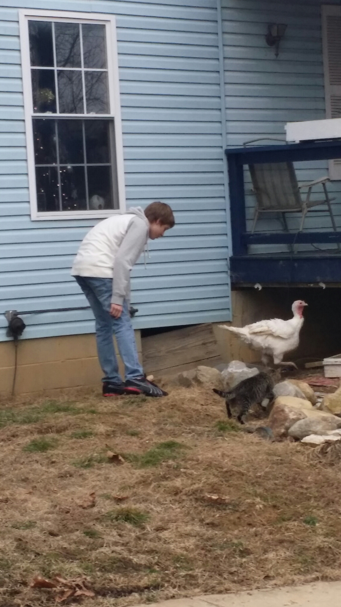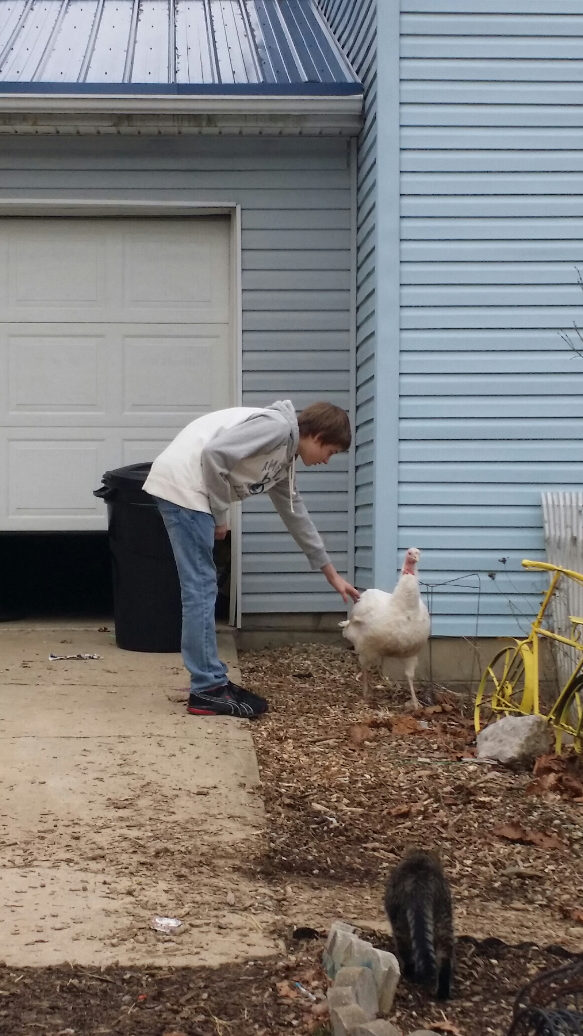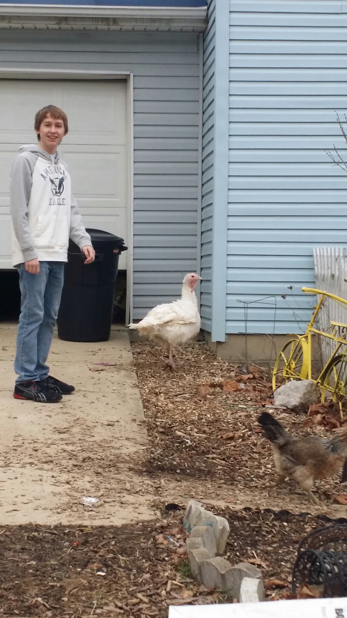 Austin holds a bird January 25, 2015January 24, 2015 / strivingacres This is Sahara’s boyfriend, Austin. He wanted to hold a bird. He followed them all over the yard trying to get one. When he caught the turkey, she poo’d by his shoes. He didn’t much want to hold her after that. Bwahahahaha!!! Teenagers crack me up!! Share this:TweetShare on Tumblr Click to share on Reddit (Opens in new window) Reddit Click to print (Opens in new window) Print Click to email a link to a friend (Opens in new window) Email PocketLike Loading...