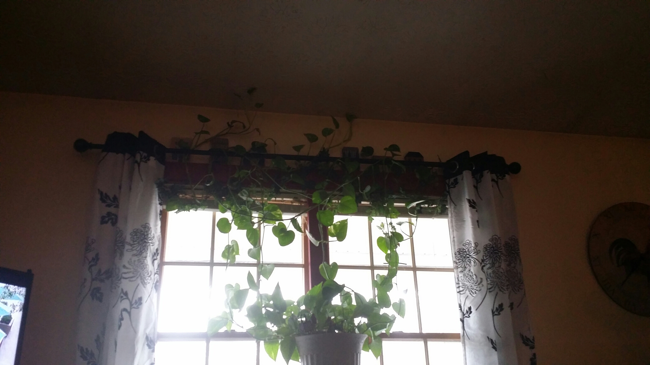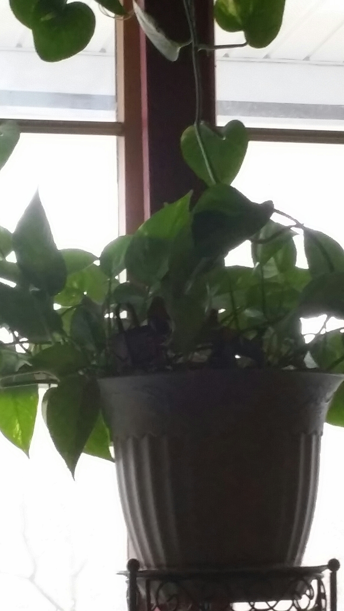 I have no idea what kind of plant this is. Ten years ago when Ted bought a car, the salesman had the car delivered to our house. I’ve moved it from room to room. I’ve chopped it to almost dirt level when the cat kept eating its leaves. I’ve forgotten to water it for weeks on end. I’ve only fertilized it a few times. I’ve only transplanted it a couple of times when it just looked huge in the little pots. The cat, dogs, and one of Sahara’s friends have knocked it over numerous times.