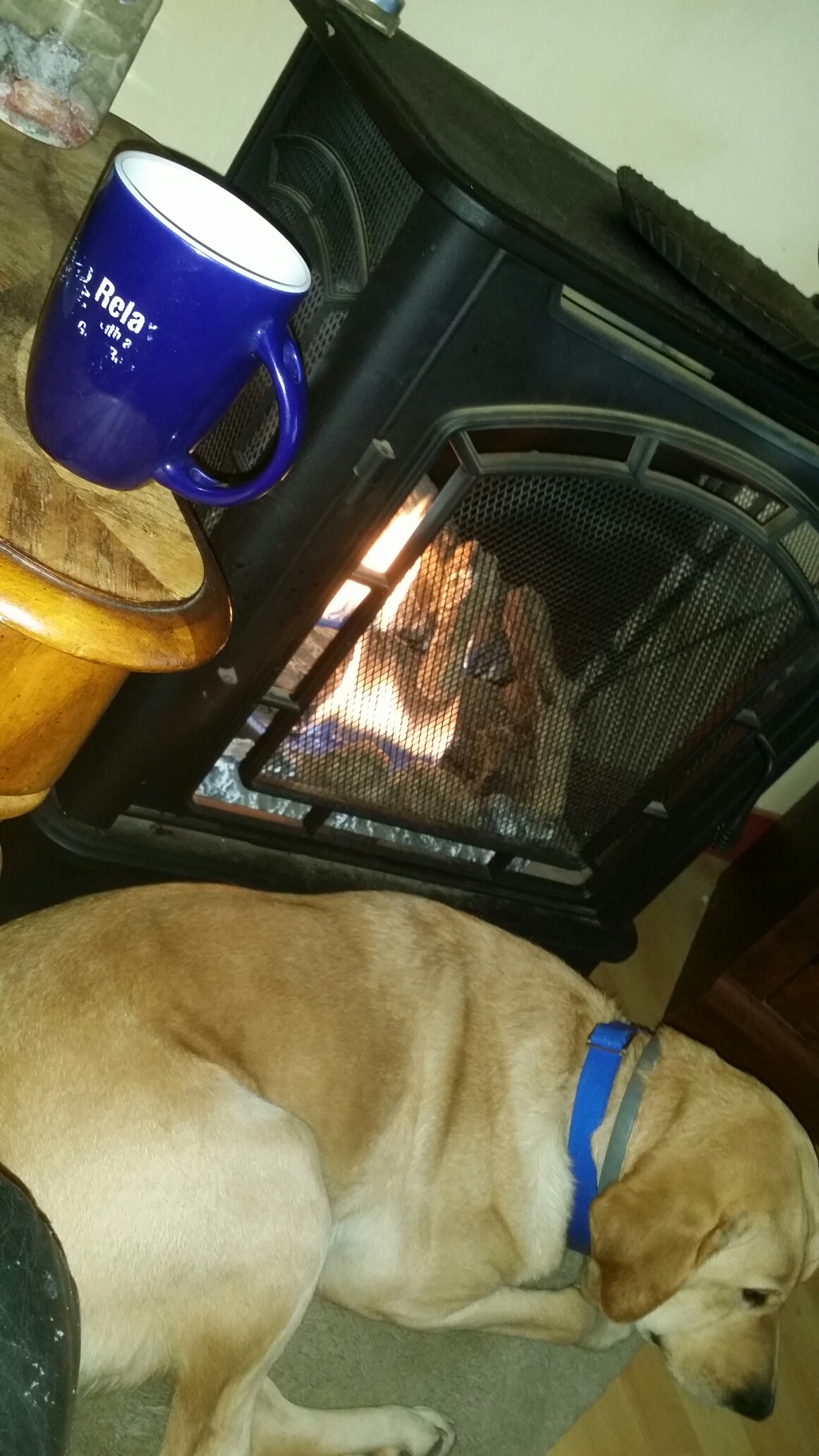 …with a good book! I also highly suggest doing so with an excellent cup of coffee and a loyal dog and a crackling fire by your side!