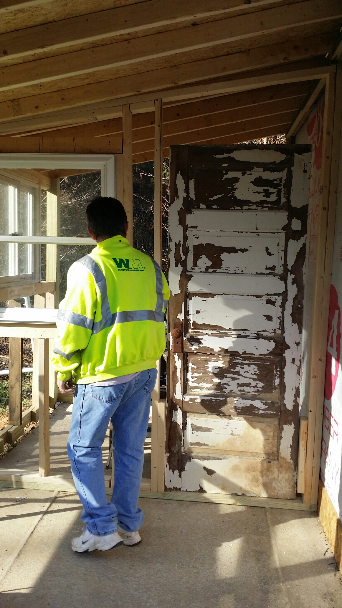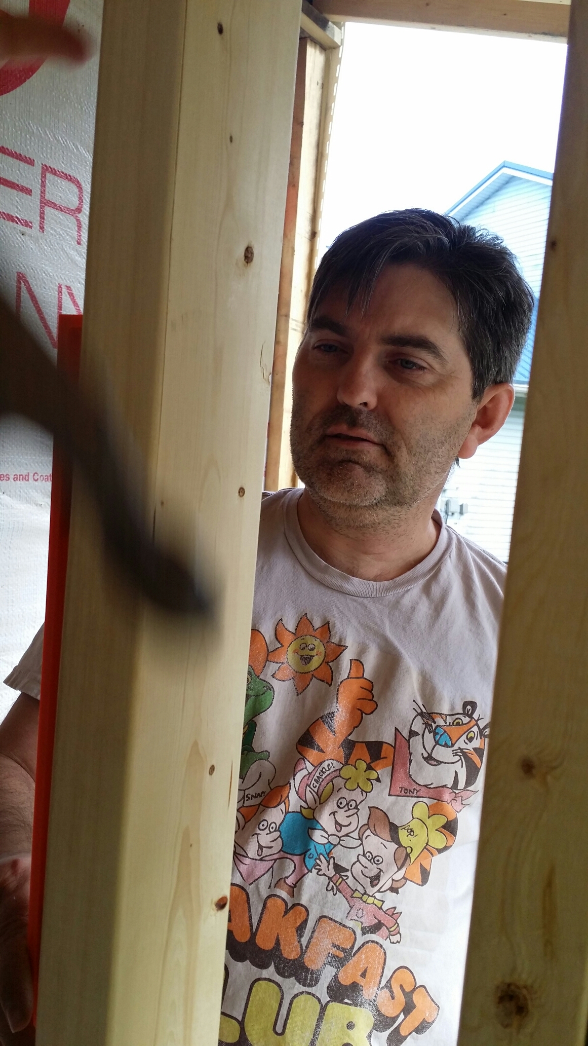 Most of the time, walls are built, stood up, and screwed into place. These walls and all the headers and frames have to be built piece by piece, one by one. They get checked every time a new piece is added to make sure they stay square (as square as possible).