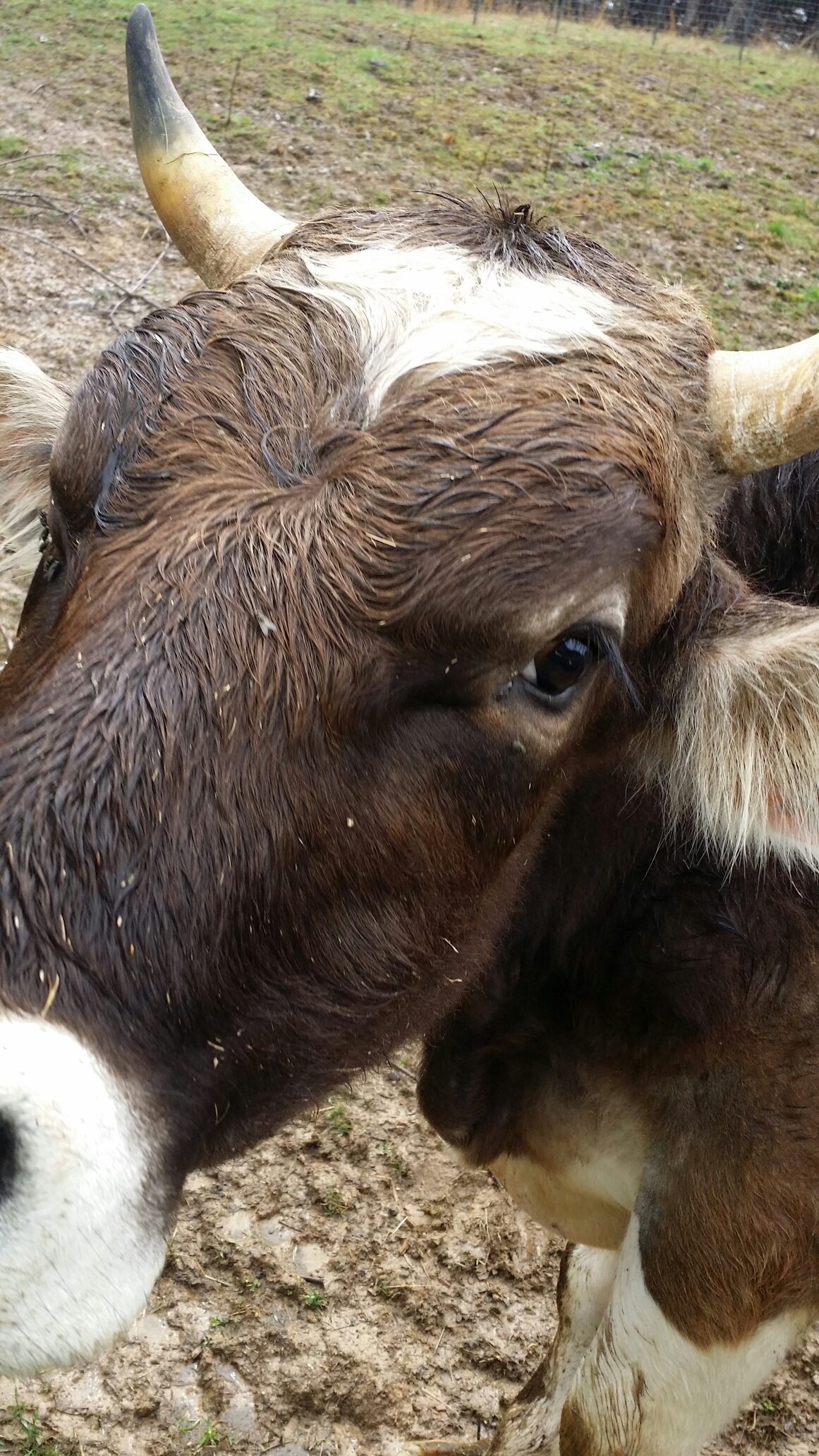 When we first got Beef last December, he didn’t want much to do with us. He wouldn’t let us touch him or accept a handfed treat. See how his head is down? It was usually like that when he saw us.