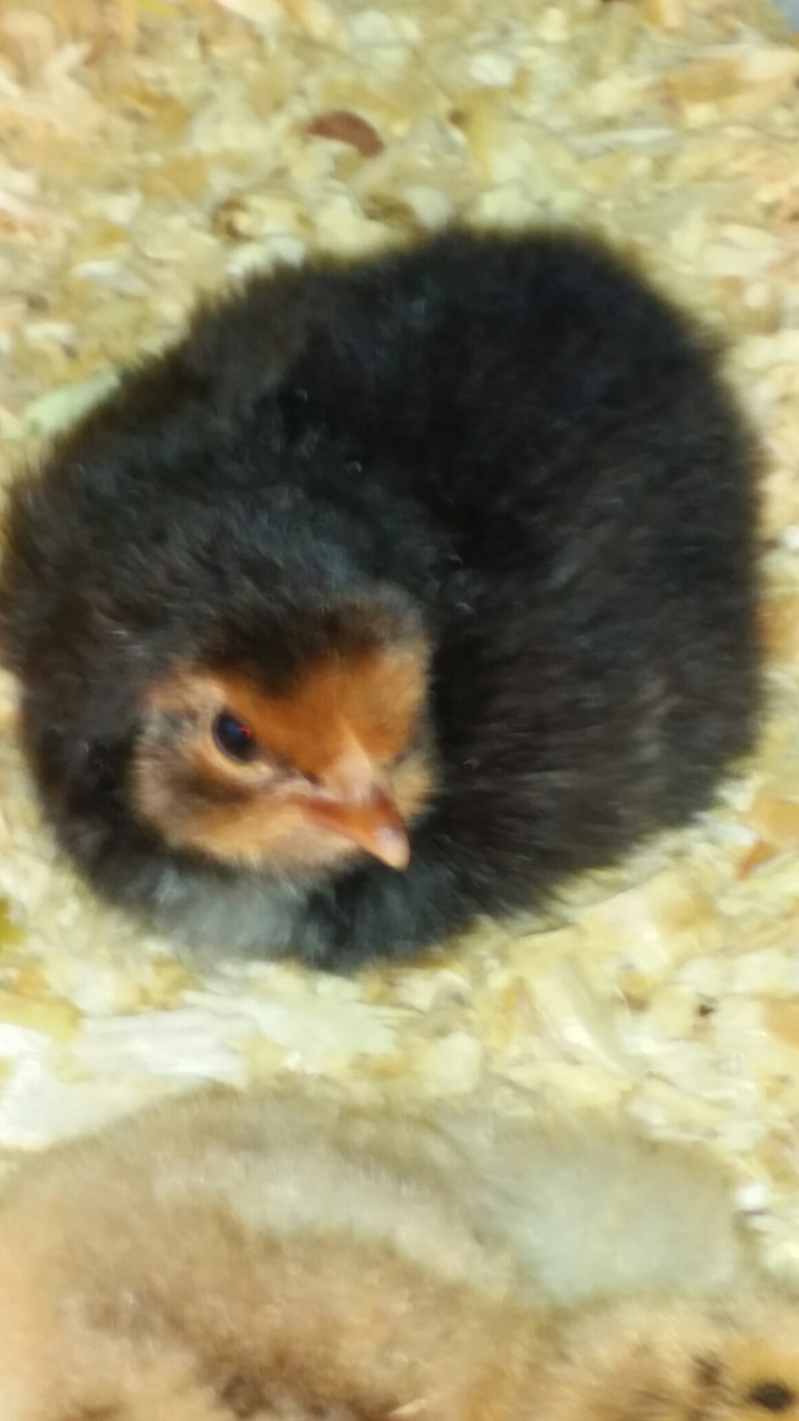Romeo (the first hatched) is a little bully. He pecks the other chicks and chases them around the pen. He’s the sweetest little thing when we handle him though; he’s so tame he jumps right up on my hand when I lower it to his eye level.
