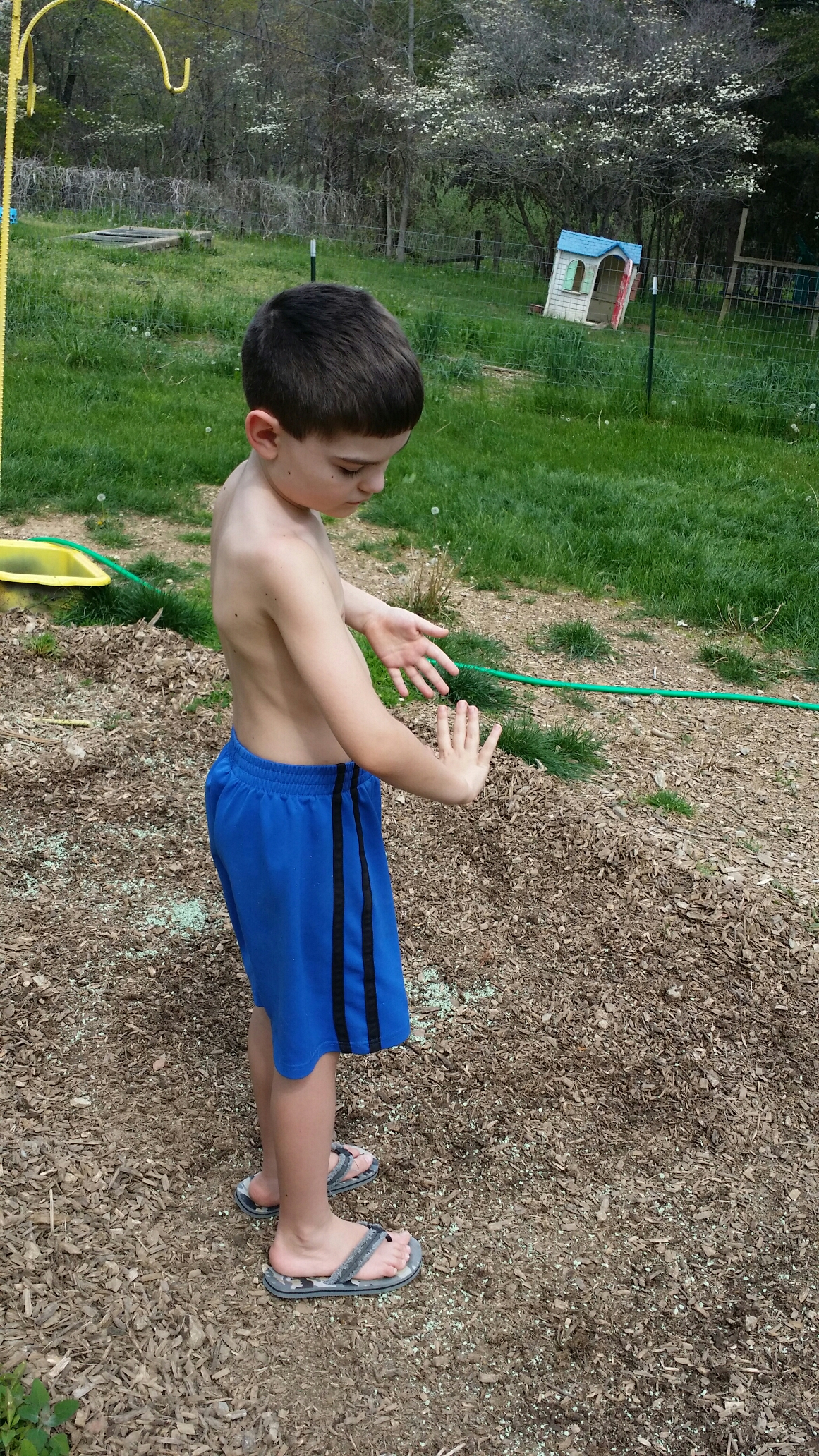 Then we planted a bleeding heart root and a bunch of zinnia seeds…