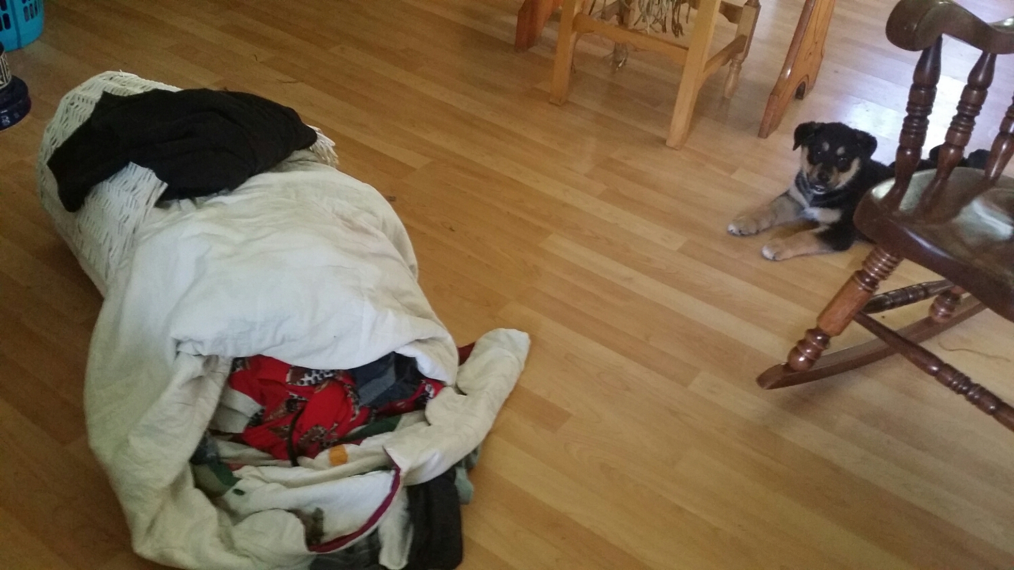 A chair and two laundry baskets blocked her from going into the rest of the house.