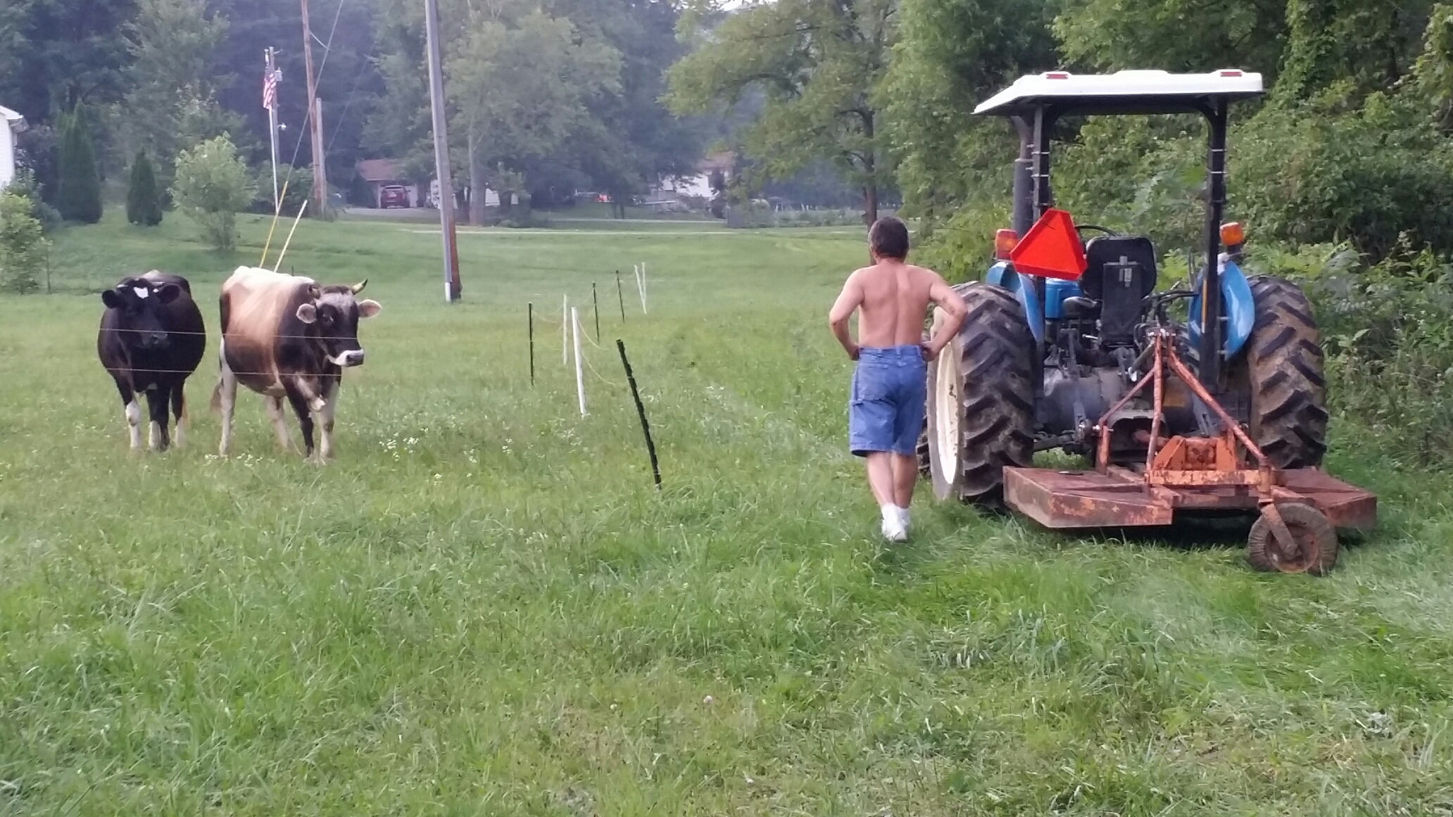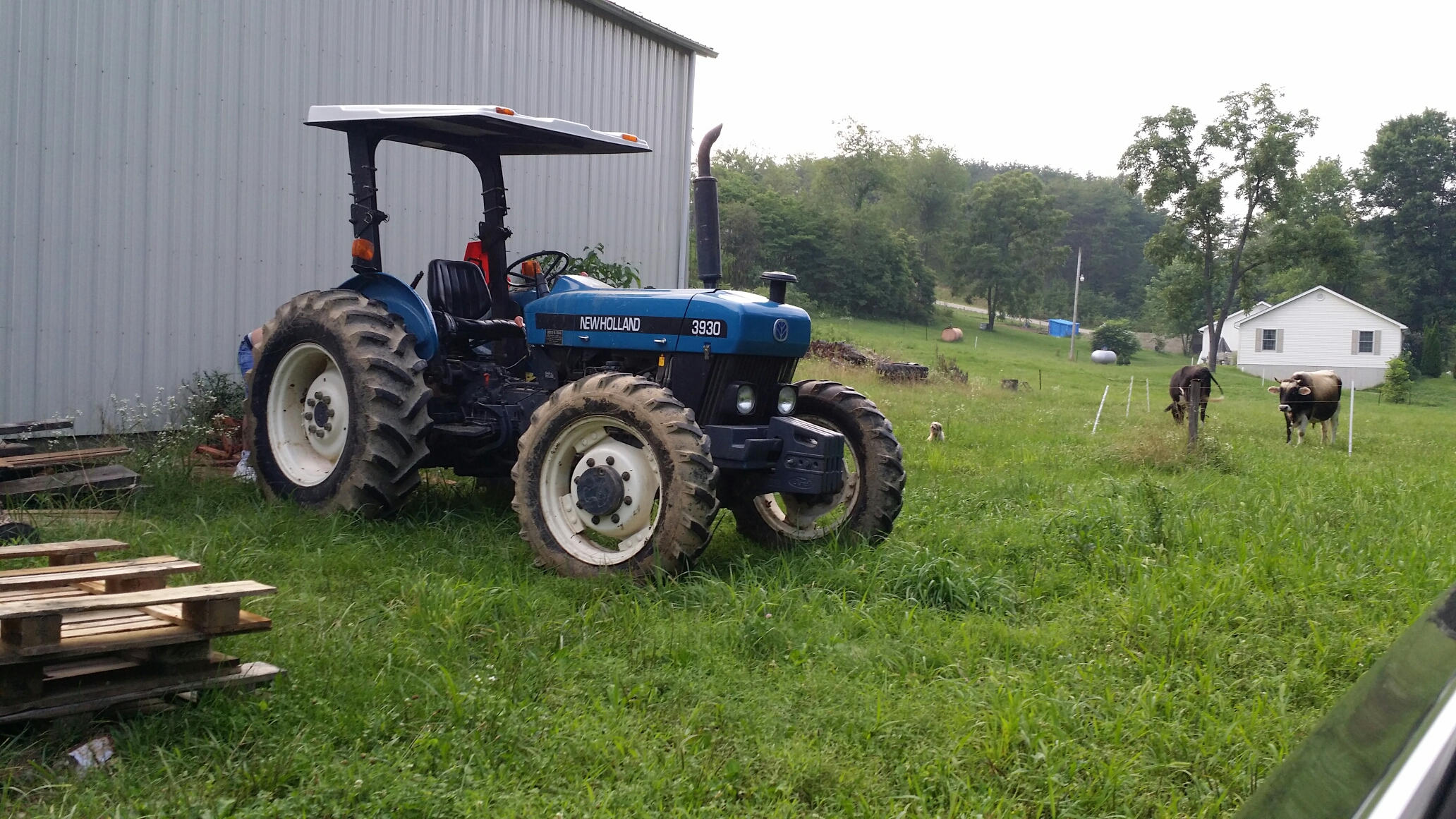 Look closely: that speck of white between the tractor and cattle is Cooper.