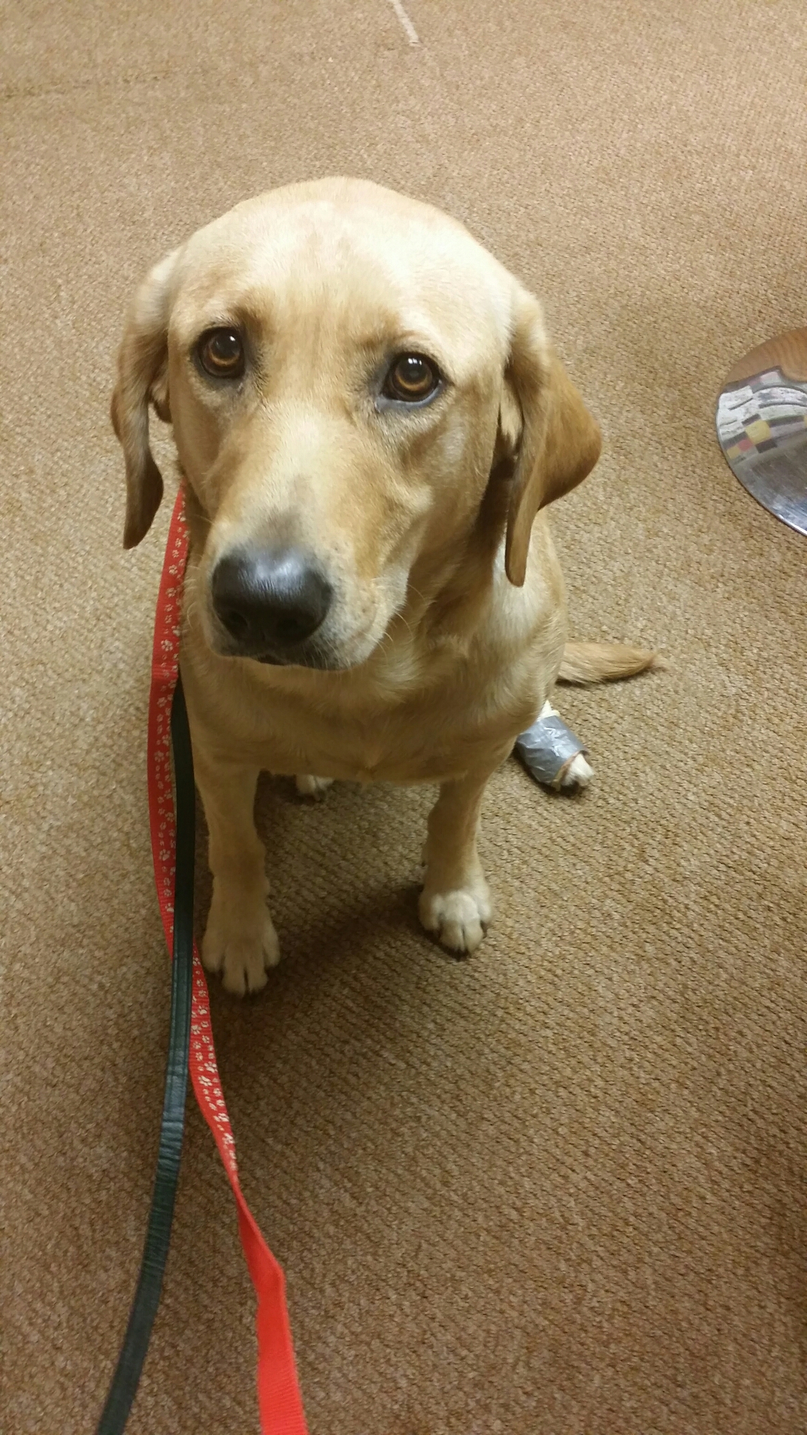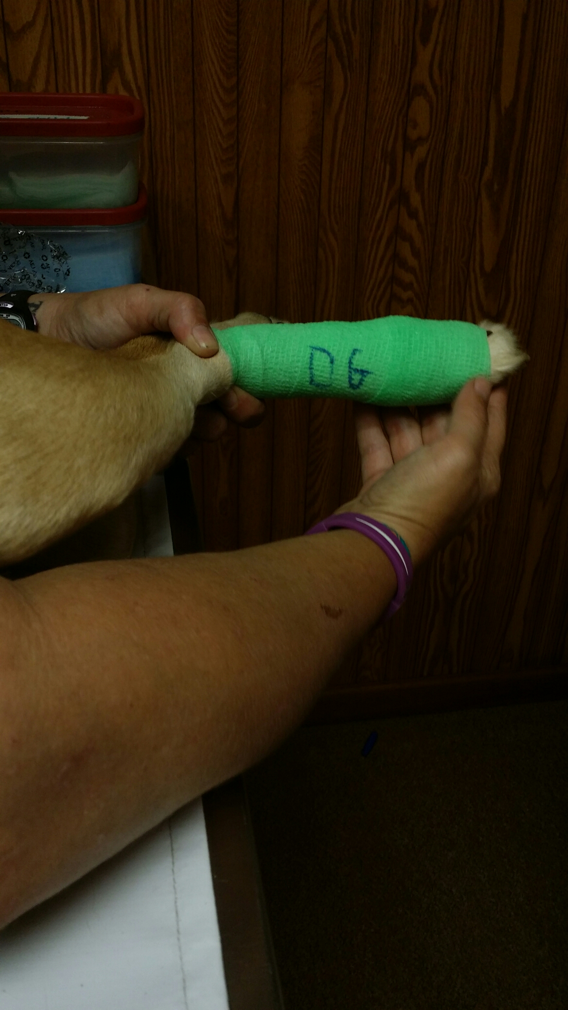 DG’s bandage showed bleeding through it, and I was concerned about bacteria and infection so I called the vet’s office this morning. They were great about getting her in right away.