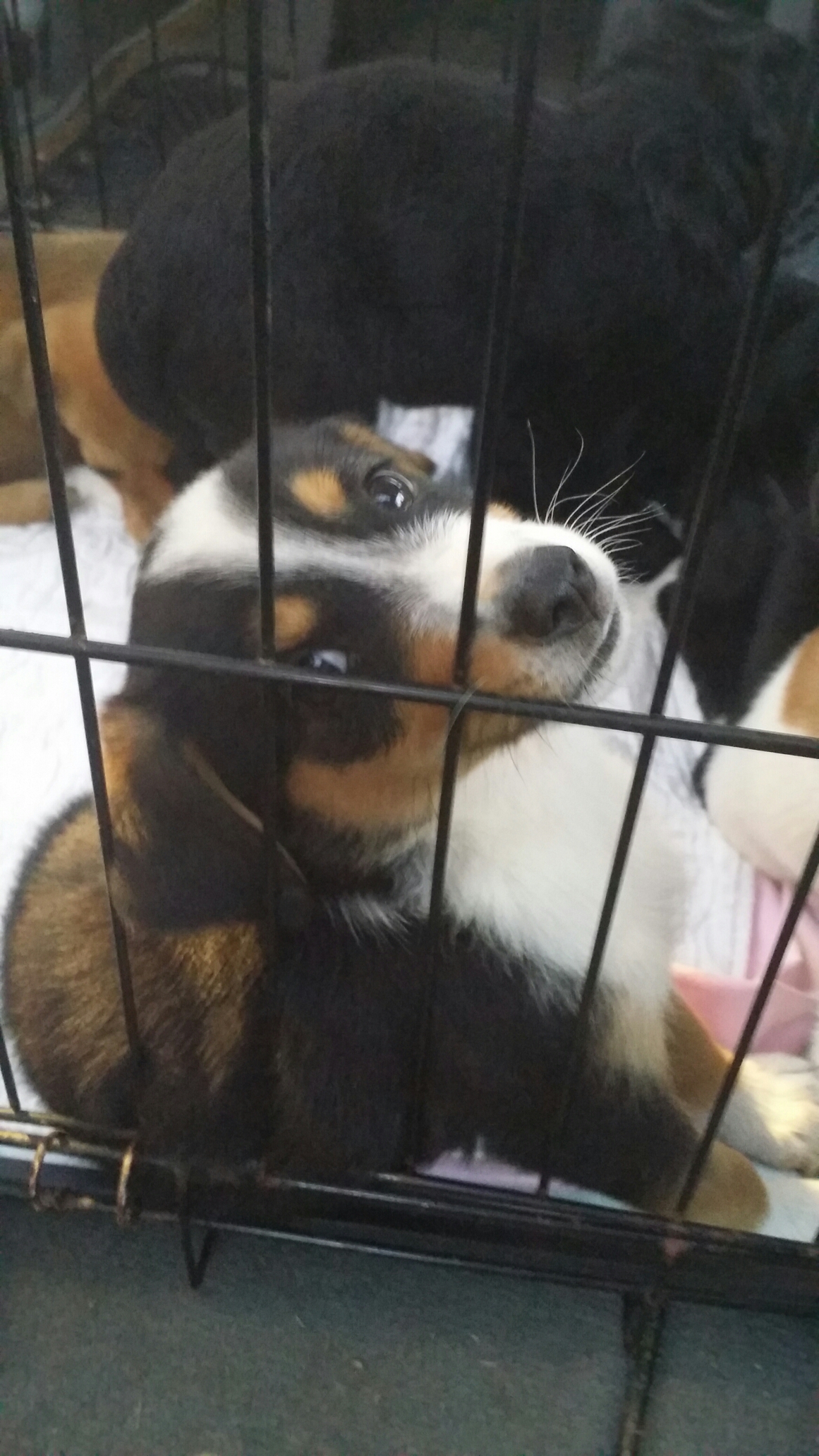 I went to the pound, bracing myself the entire way and telling myself I would only be taking home the three wild unsocialized puppies so I could give them the best chance at getting a home because the other five were very friendly toward people. When I got there, I went to the cage and looked at all eight of these little puppies, and I said to my friend exactly what I had been telling myself about the three. She asked me to please take them all so they wouldn’t have to stay in the pound, and she told me they would all be going to rescue between Thursday and Saturday of this coming week.