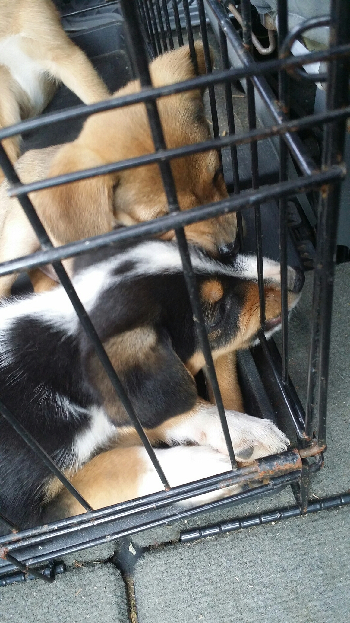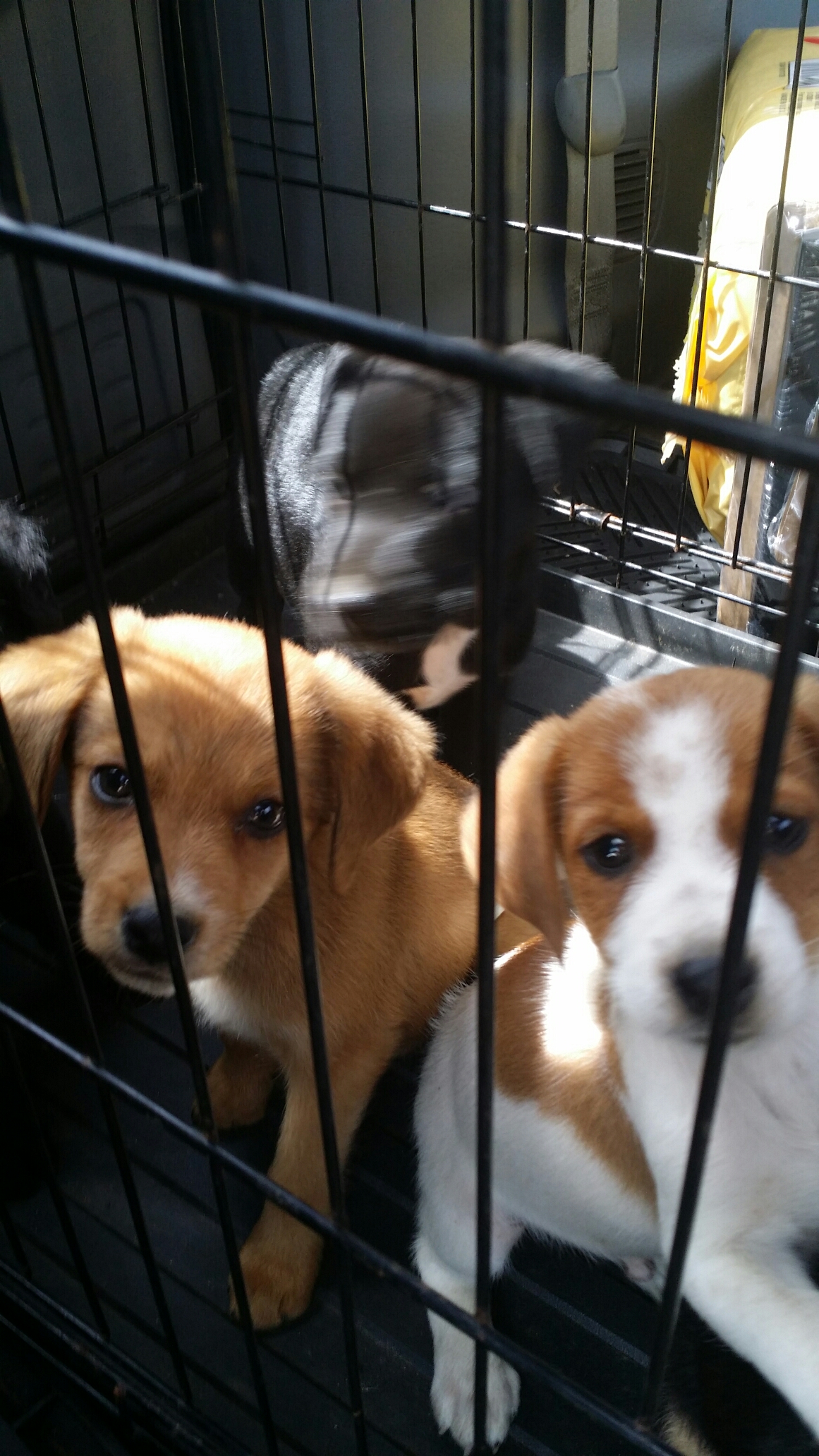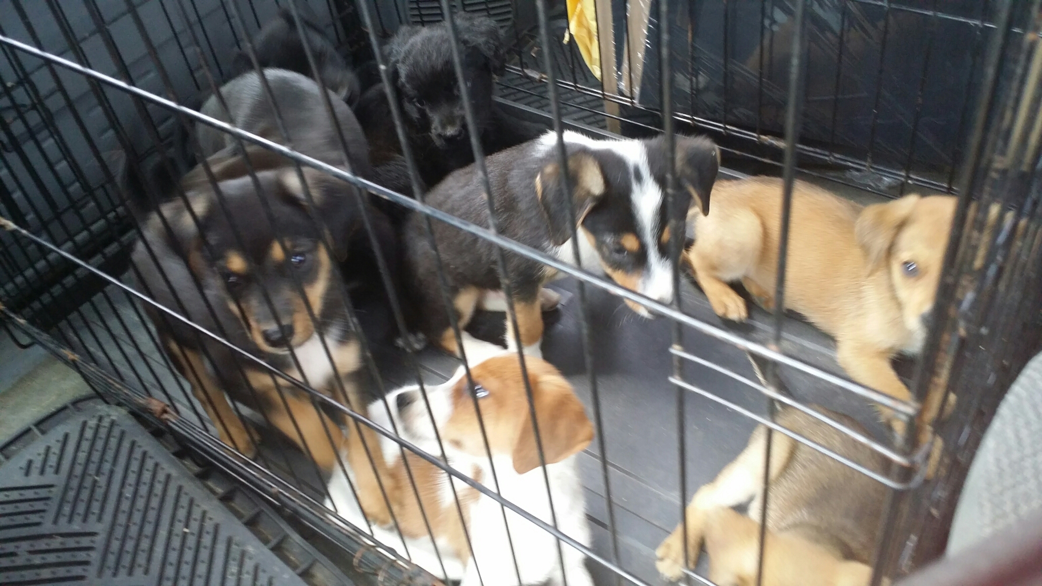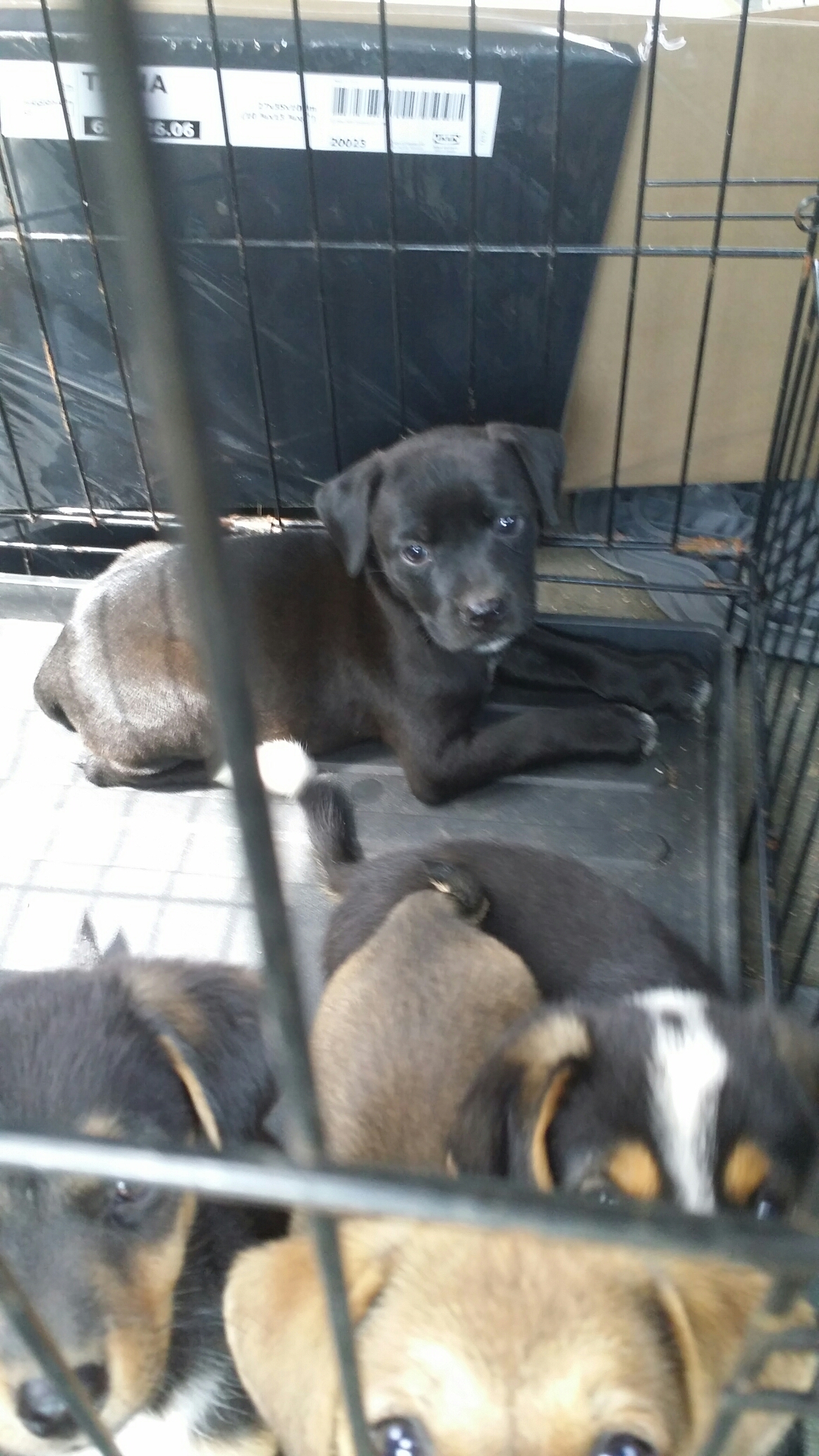 The puppies are off to the rescue transport! I am happy to say they all were quite sociable with us by the time they left my house Tuesday afternoon. I think it might have had something to do with all the food, tummy rubs, and treats we gave them; even Howler (the black one with the white chest stripe who hated us all the first two days and just stood in the corner howling and growling at us nonstop if we dared look that direction) came running when I did the kissy noise and called.