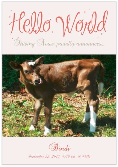 We cannot think of a better name for our little Bindi because that is indeed what she is for us: an awakening. Seeing her birth and seeing how Bessie, and now Beef, react to her, care for her, and love her goes beyond anything we ever imagined. Our little Bindi’s birth has renewed our commitment to run an ethical and humane farm for all of the animals here.