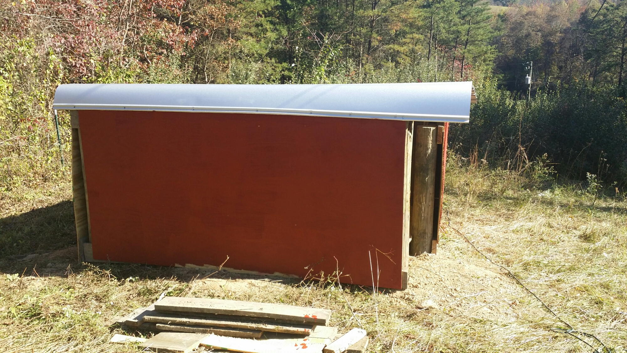 We met up with a couple from lower Kentucky, and they made the drop (doesn’t that sound like super spy stuff? LOL)! The straw bale was cut open and stuffed into the cage and wrapped with the tarp…and then we drove back home.