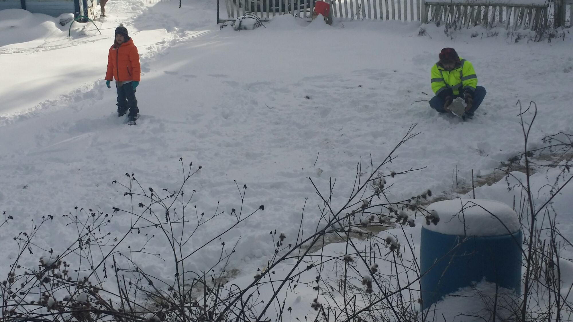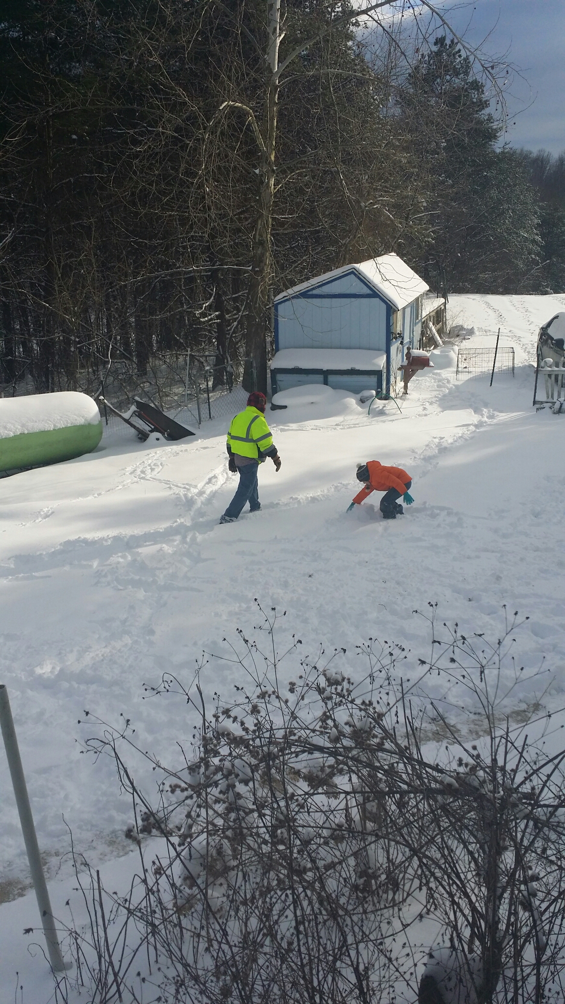Ted insisted on shoveling the sidewalk and plowing the driveway (although that didn’t happen because the battery was out on the tractor), and Jake insisted on playing in the snow. They’re nuts!