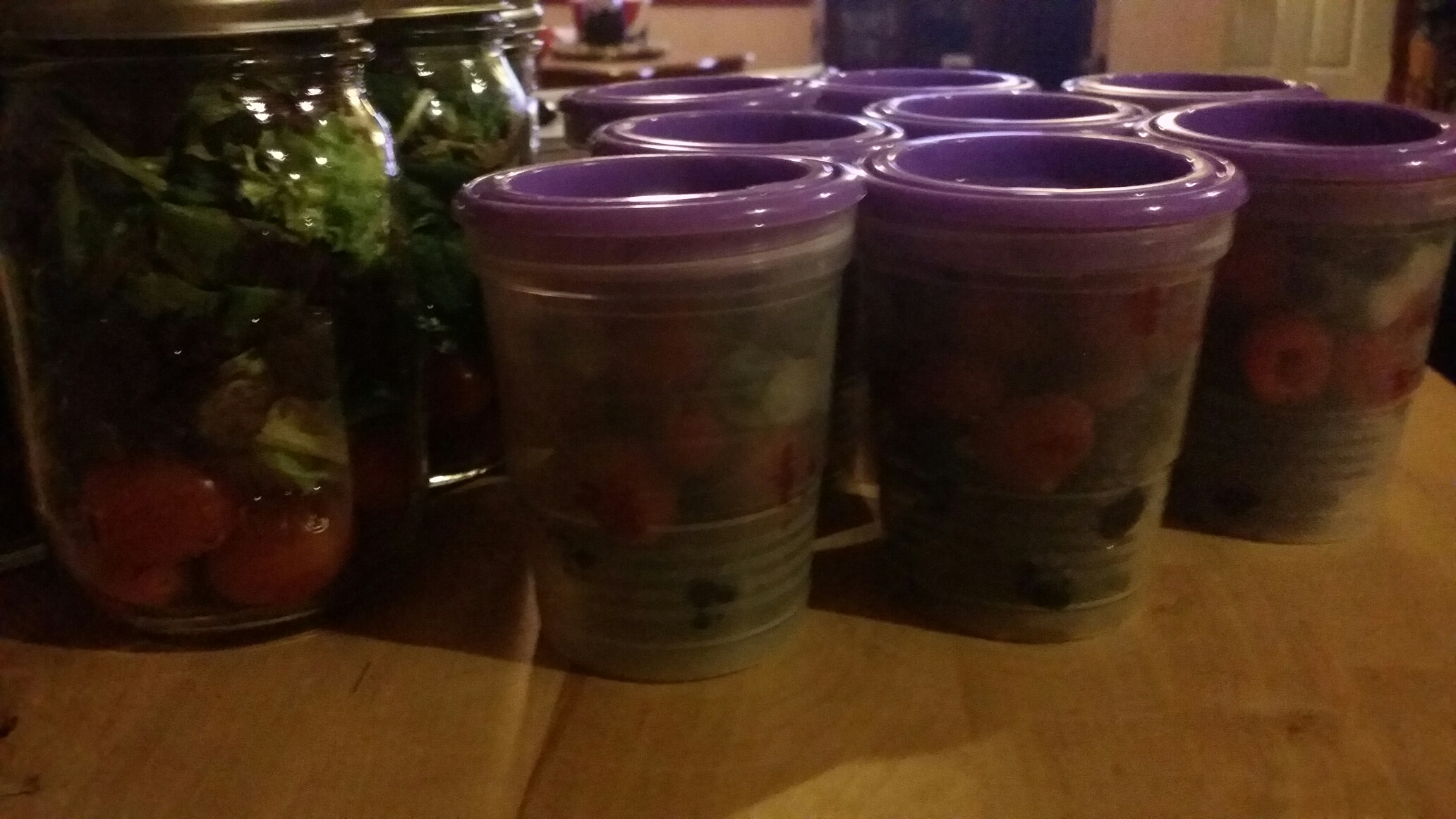 Easiest on the go lunch prep ever: salads in jars and berries in cups!