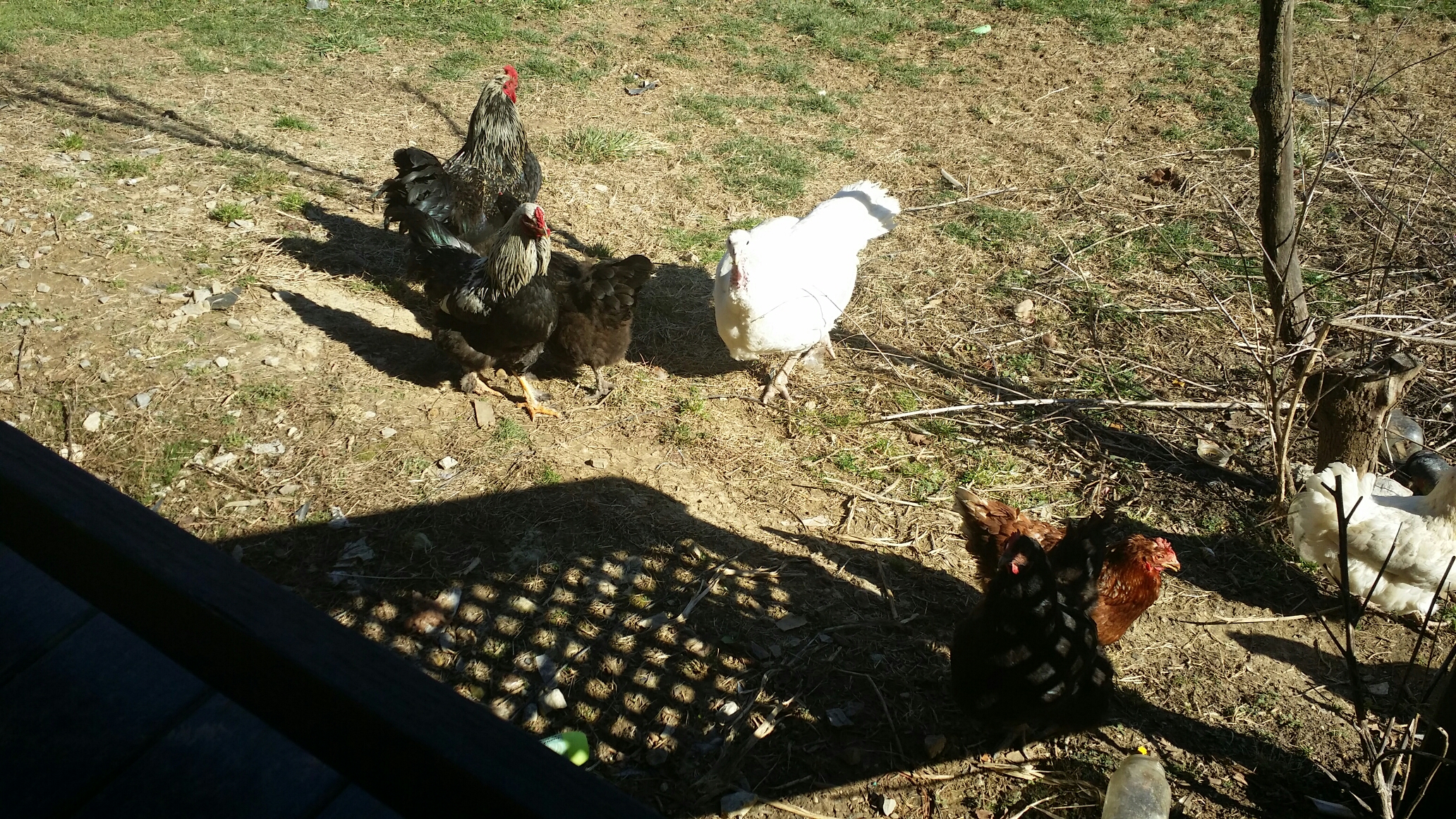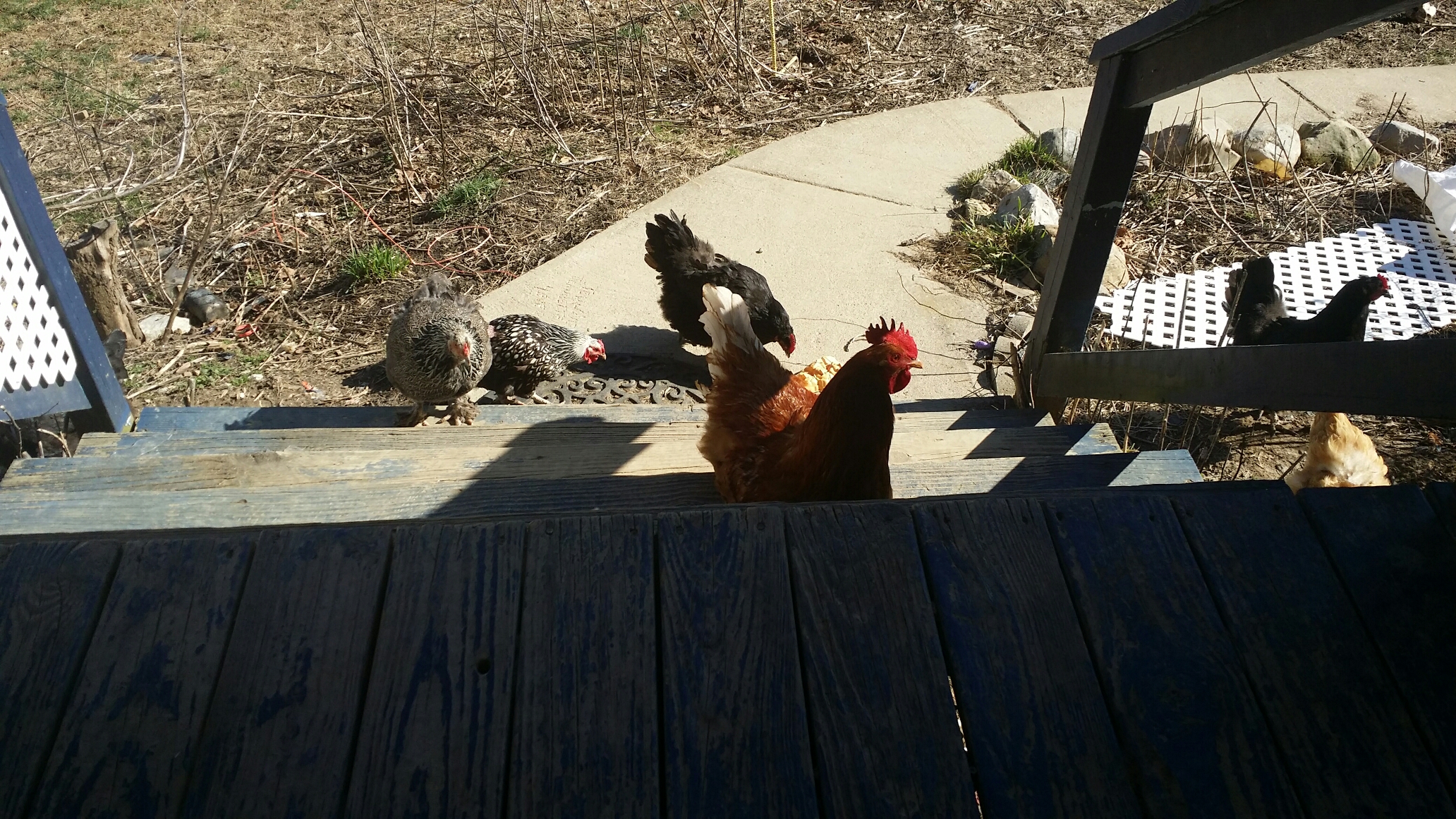 Slacker is just waiting for me to go back inside so she can eat the dogfood. She’s the one who always looks for the easy meal. She’s lucky she lays eggs so well, or she’d find herself in the noodle pot!