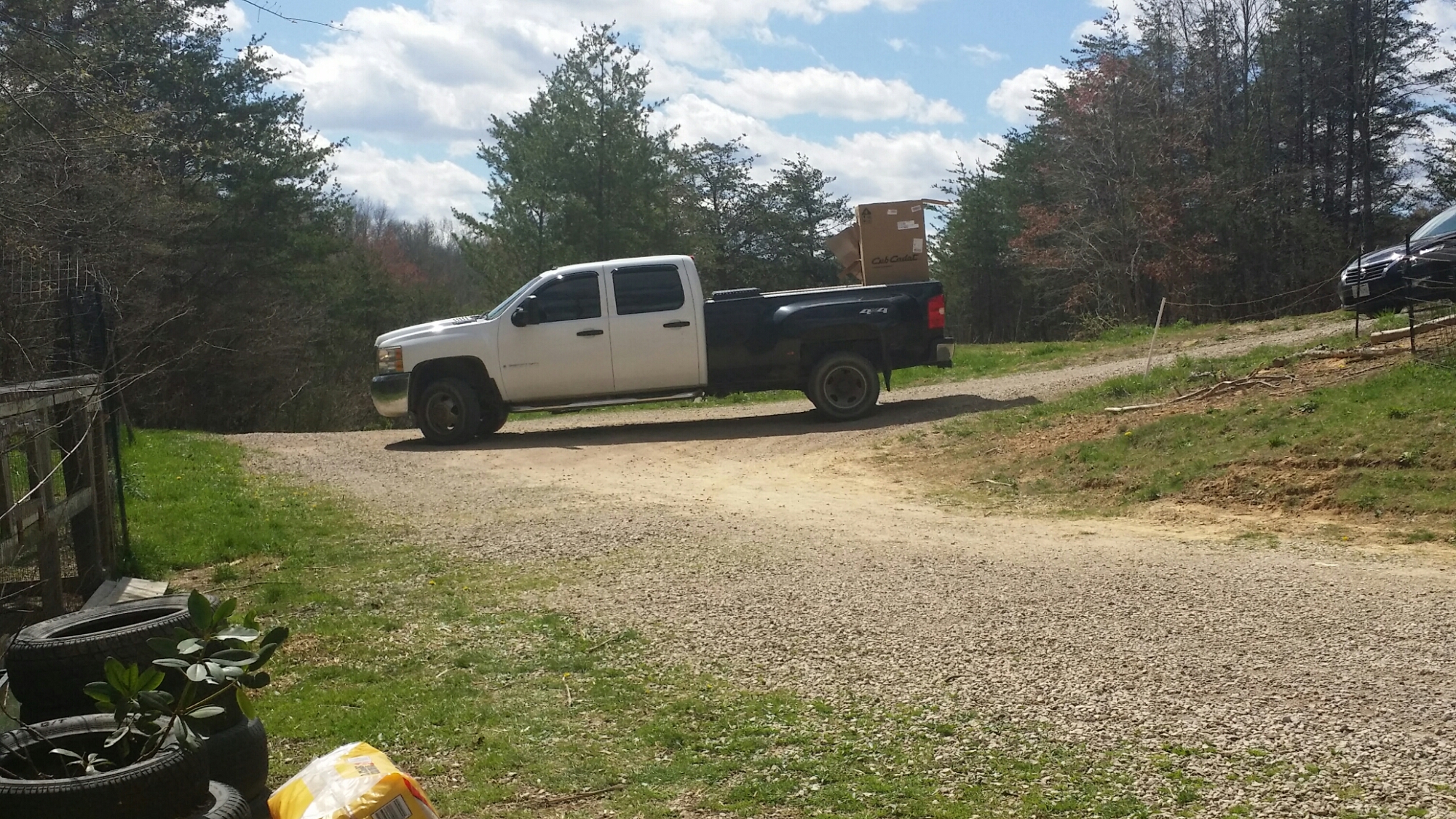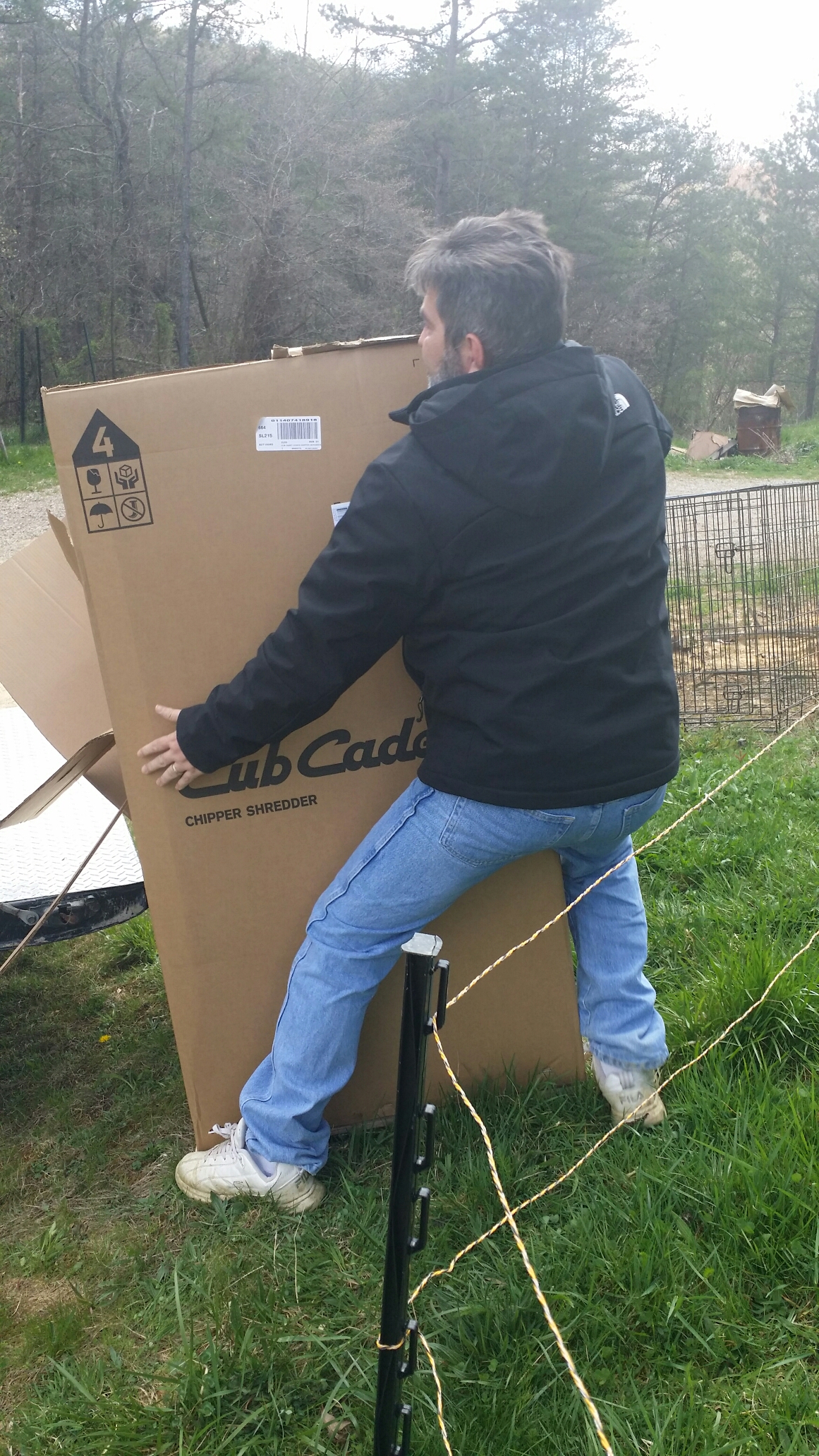 When he got it unboxed, he was disappointed to discover that the bag of pins, safety goggles, and manuals was missing, but I called Cub Cadet, and it’s in the mail on the way here. A quick trip to Tractor Supply to get two pins fixed it so he could use it, and he got to play with it for about two hours today before it got super cold and rained.