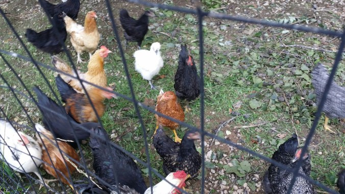 Ted got the t-posts and fencing fixed, and the chickens (who stood inside the coop and watched us work all day like we were their free entertainment) came out and picked through all the fallen leaves, twigs, and branches…