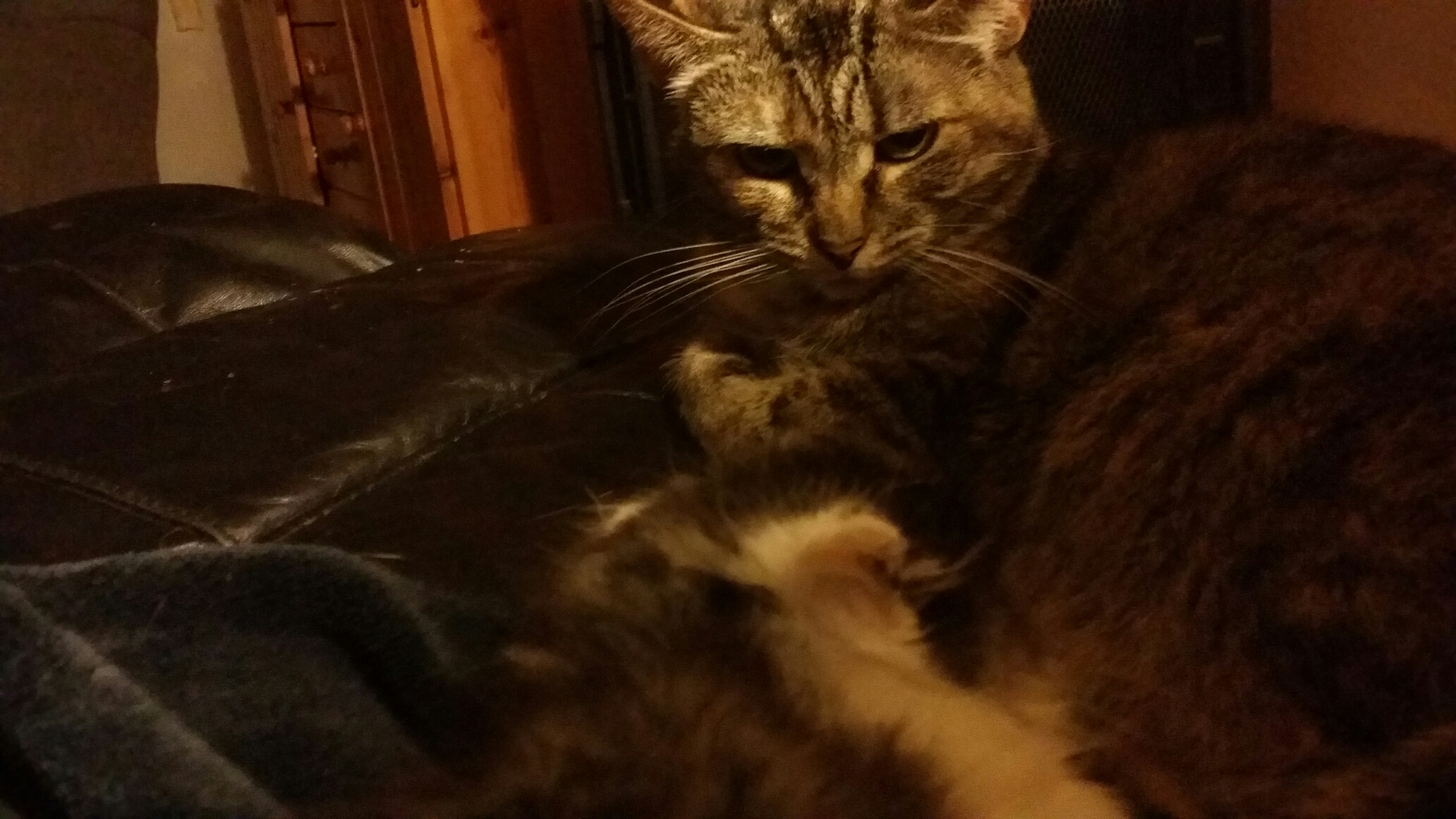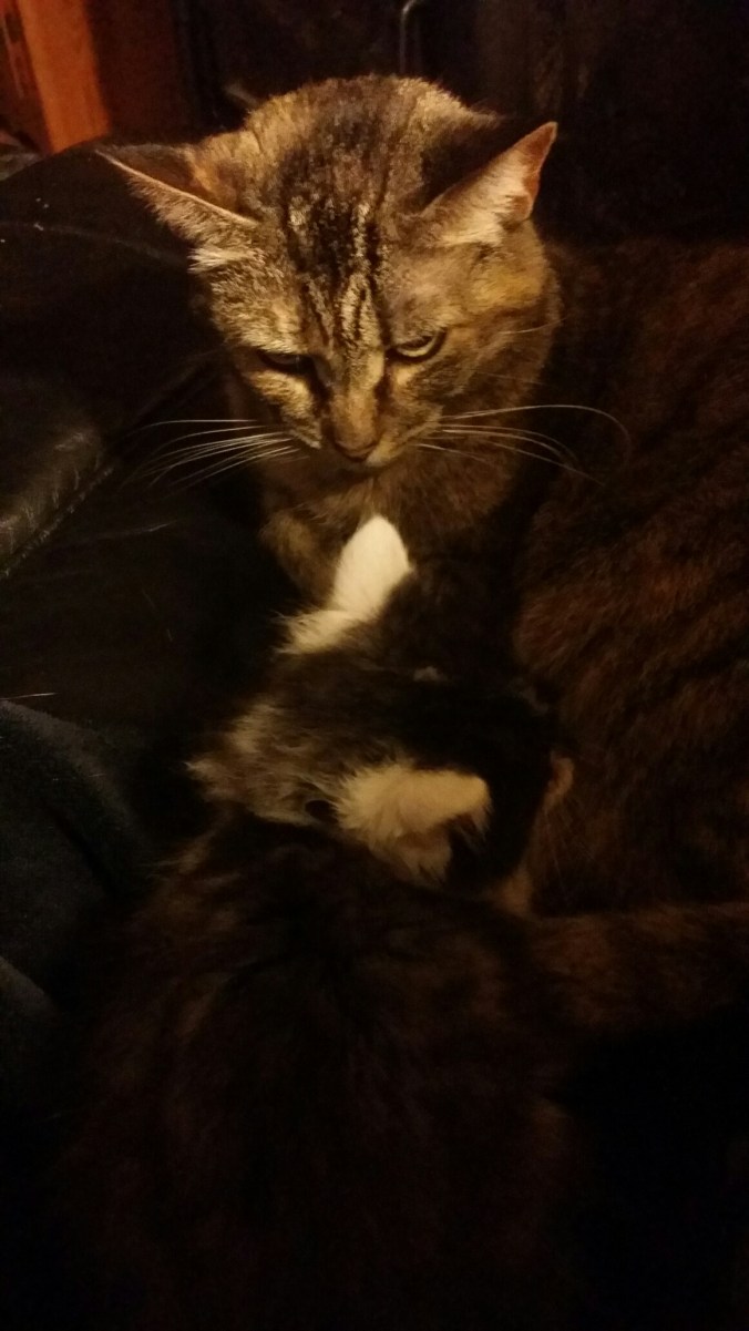 Mean old grouchy cat August 29, 2016August 28, 2016 / strivingacres Daisy hates the kittens. She wanted to steal them (and often tried) when they were younger, but now that they’re bigger, she just hates them. Look at that face! If looks could kill….LOL Share this:TweetShare on Tumblr Click to share on Reddit (Opens in new window) Reddit Click to print (Opens in new window) Print Click to email a link to a friend (Opens in new window) Email PocketLike Loading...