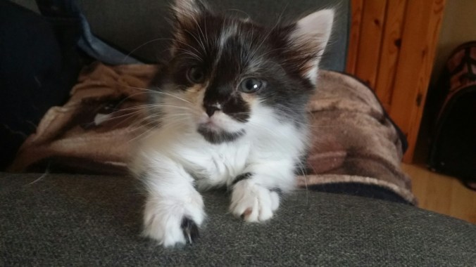 She’s so sweet. She’s still very small though; Milo is huge compared to Tucker. I’m not sure if her growth is stunted or if she’s just going to be a small cat. She’s definitely my little baby right now!