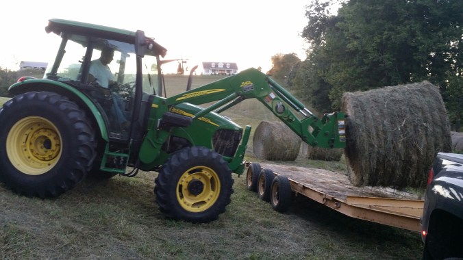 Getting in the hay October 9, 2016October 8, 2016 / strivingacres We started getting in our round bales for the winter. This is the way to do it – freshly baled, straight from the field! Now we just need to put by 21 more bales… Share this:TweetShare on Tumblr Click to share on Reddit (Opens in new window) Reddit Click to print (Opens in new window) Print Click to email a link to a friend (Opens in new window) Email PocketLike Loading...