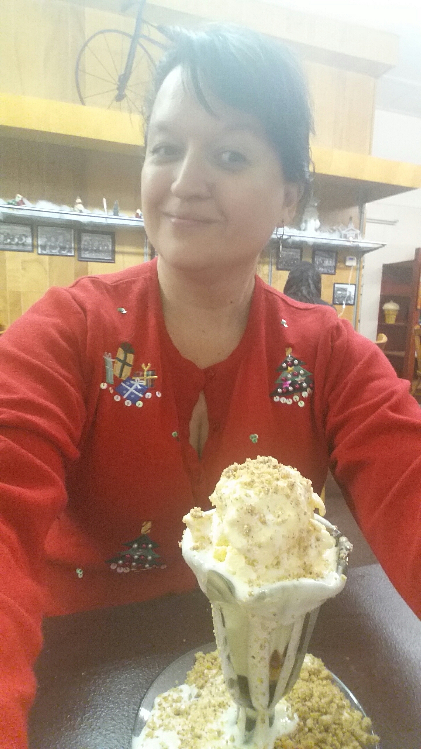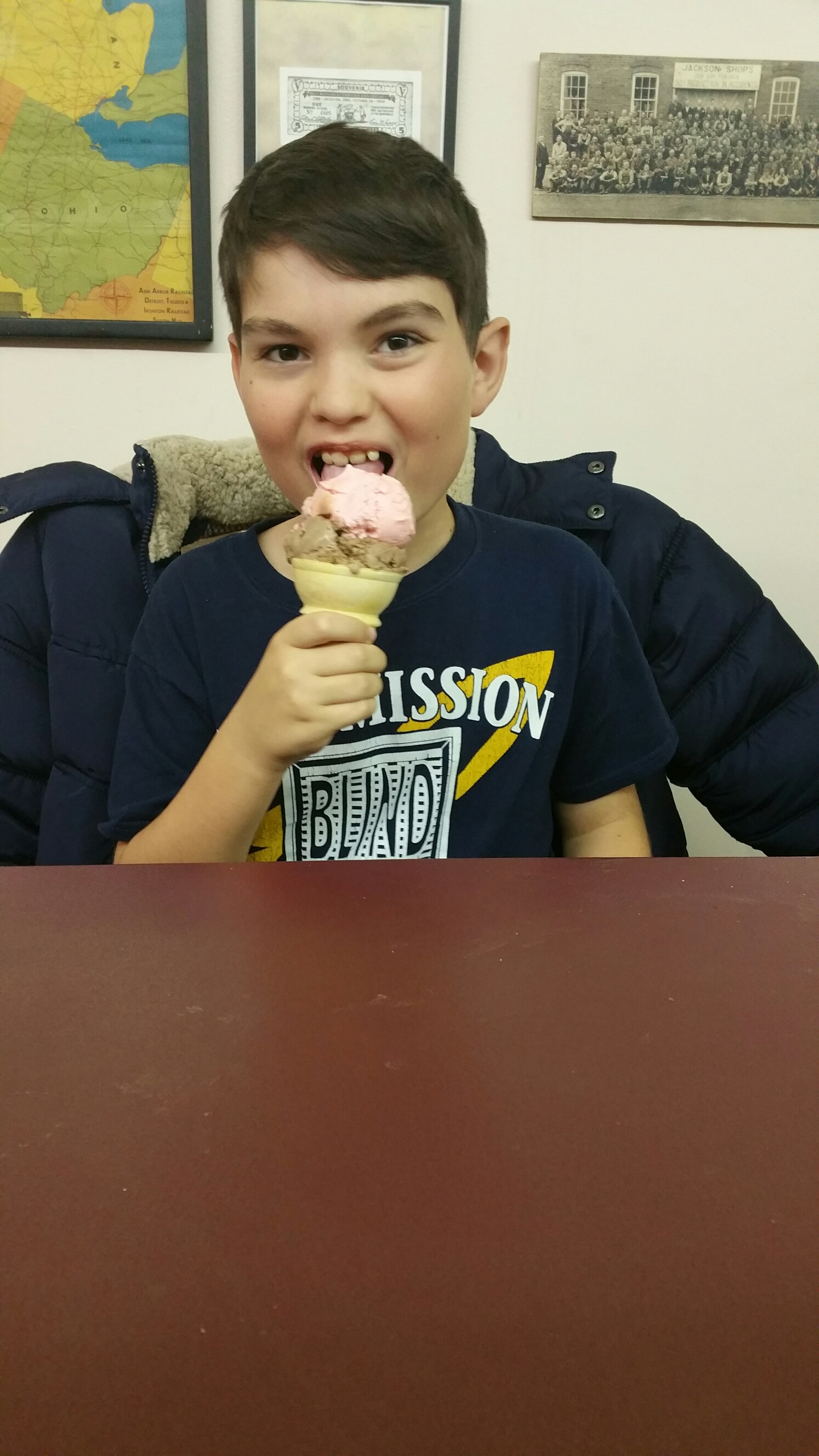 We headed to the ice cream shoppe tonight for ice cream and Santa. This is a tradition Jake and I just started last year when the town started having a tree lighting and small town shopping day. Jake gets a chocolate and strawberry cone…