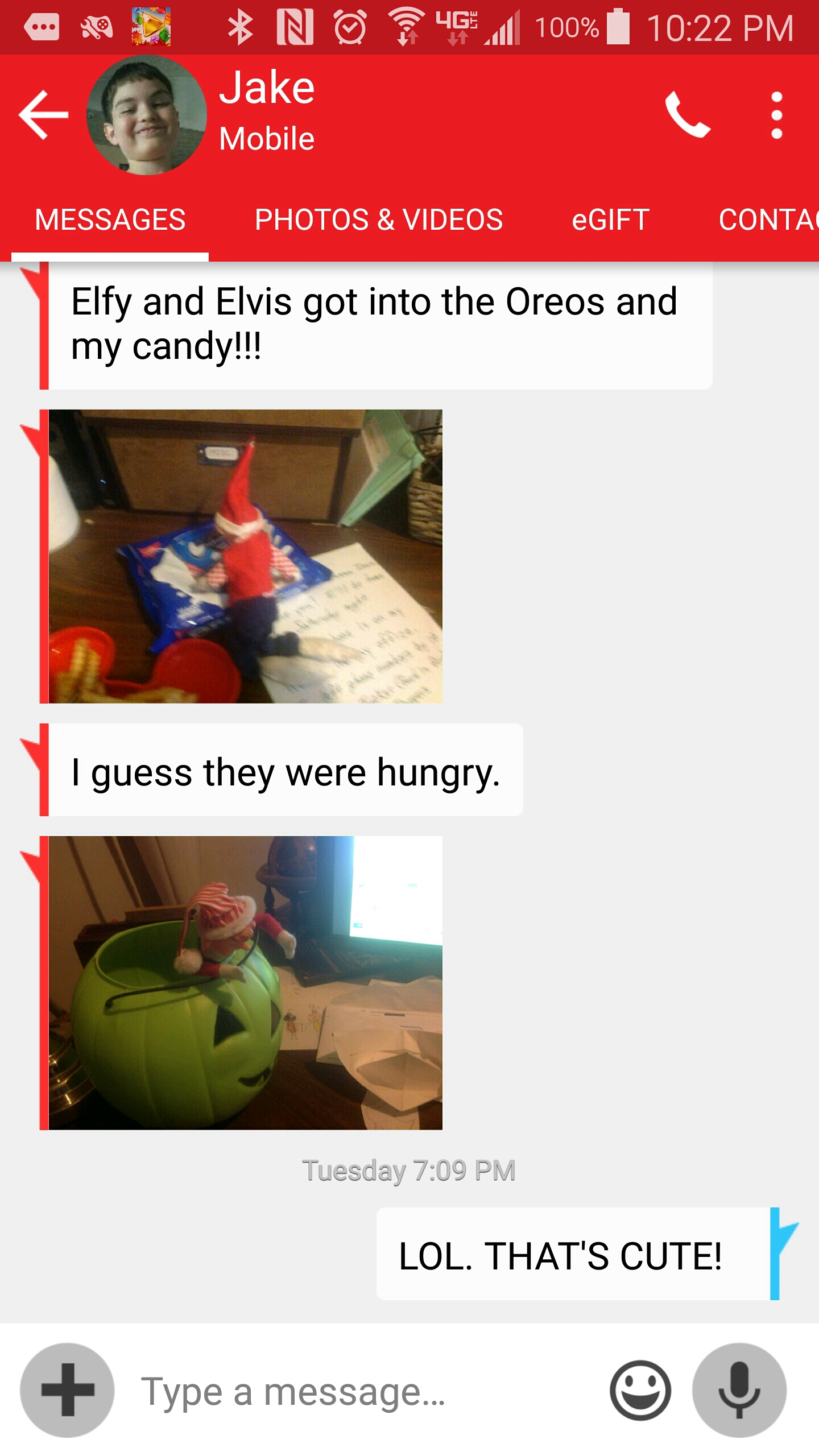 Elfie and Elfis escapades December 5, 2016December 5, 2016 / strivingacres Jake has been taking photos of the elves with the iPad and texting them to me. The elves also brought Brownie mix one day after school and a Lego Advent calendar for Jake one morning. He’s really having fun with them this year! Share this:TweetShare on Tumblr Click to share on Reddit (Opens in new window) Reddit Click to print (Opens in new window) Print Click to email a link to a friend (Opens in new window) Email PocketLike Loading...