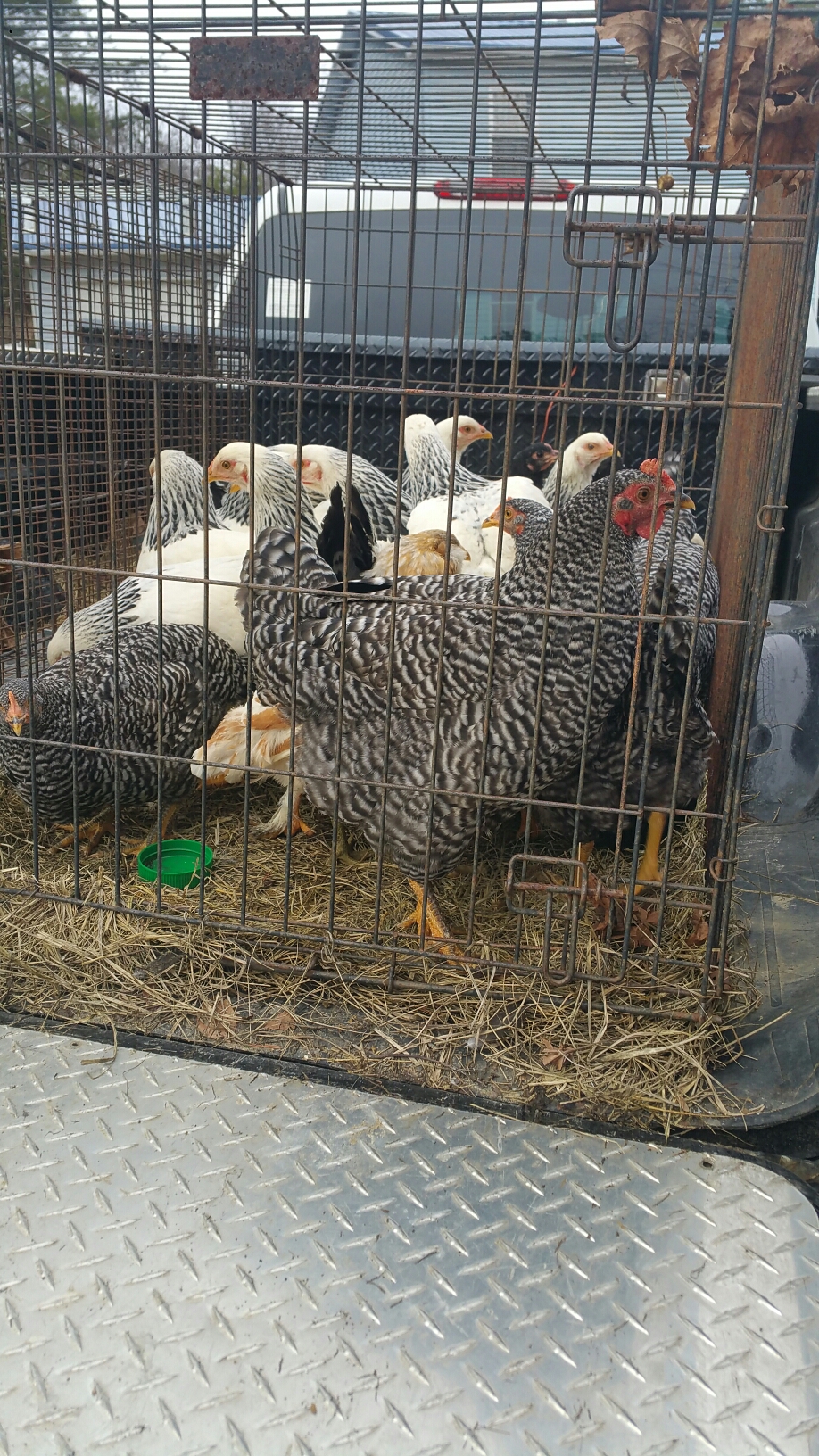 Ted and I made a four hour round trip today to pick up 28 new hens.  They are young five month old pullets, and they are just gorgeous and SO DOCILE AND SWEET!