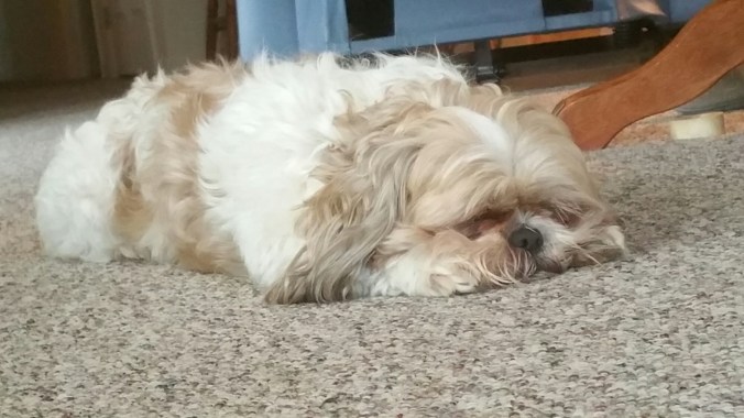 Chewy is Gramma Izzie’s little nine year old Shih-Tzu. Dad bought him years ago, before he retired from teaching, and Gramma became the doggie daycare for him for about fifteen hours a day. They loved each other so much (and Chewey slid around on Mom’s hardwood floors and good rugs one time too many) that eventually, Chewy turned into Gramma’s dog and never left again.