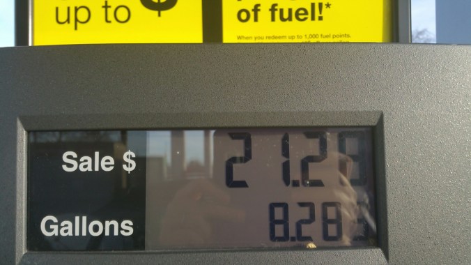 I did NOT get great gas mileage this time on this tank! I think it was because I did a lot of idling the day we burnt that huge woodpile. It took all day, and we kept getting in my car to warm up. I never realized how much that affected the mpg. Now that I know, I won’t be doing any idling in anything anymore!