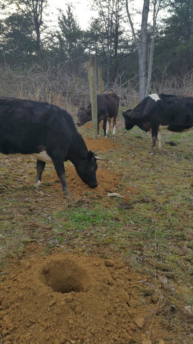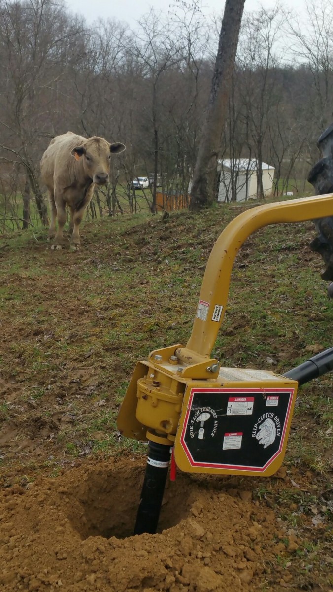 It took us forever to get the post holes dug with the tractor because the cattle kept getting in the way. They wanted to be involved right in the middle of what was going on.