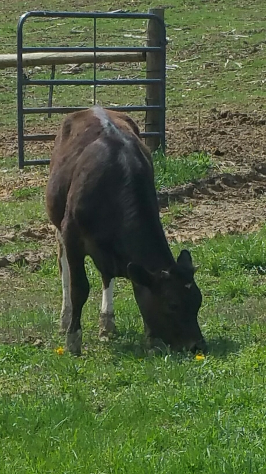 Chip, newest herd member (hopefully sire to our future beef herd and dual purpose heifers), 7 months old