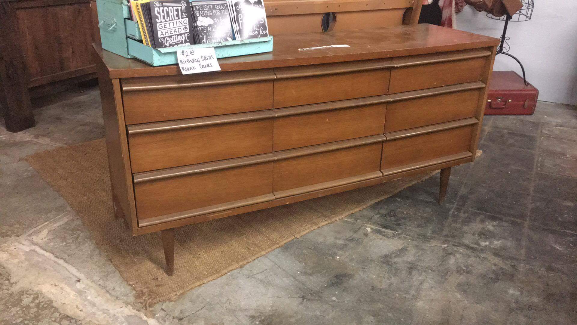 I’ve been on spring break all week, and I have accomplished so much! I tore apart two bedrooms and deep cleaned them floor to ceiling, moved furniture, tossed and tossed and tossed (donations and trash bags), and decorated. Unfortunately I now have huge baskets of laundry from Sahara’s room and realized she just doesn’t have enough dresser space so I found this solid wood beauty at The Rusted Barn, and Ryan delivered it yesterday. I have it on my list to get this painted this weekend, and then those clothes can get put away!