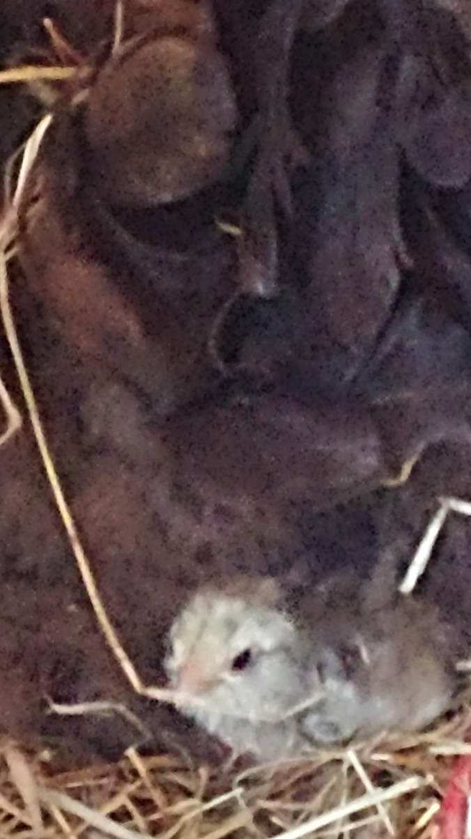 WE HAVE CHICKS HATCHING!!! June 4, 2017 / strivingacres We were heading to dinner to meet friends last night when Ted heard peeping in the coop! This little chick was peeking out from under the mama hen’s tail feathers!!! Share this:TweetShare on Tumblr Click to share on Reddit (Opens in new window) Reddit Click to print (Opens in new window) Print Click to email a link to a friend (Opens in new window) Email PocketLike Loading...