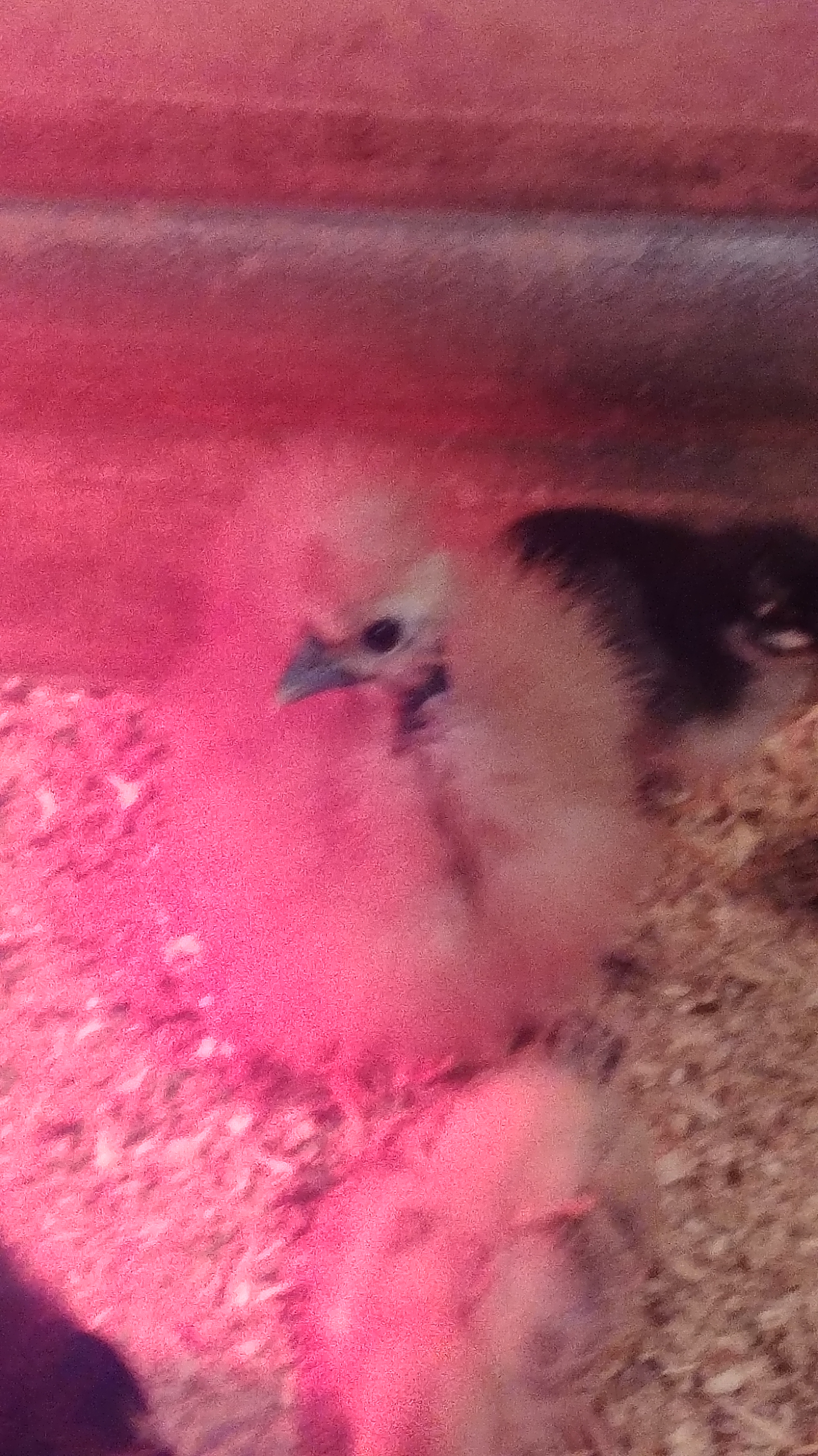 and a sizzle pullet (the one with feathers sticking up everywhere)! These two beauties settled right in with the chicks we currently have in the living room, and they are so sweet!