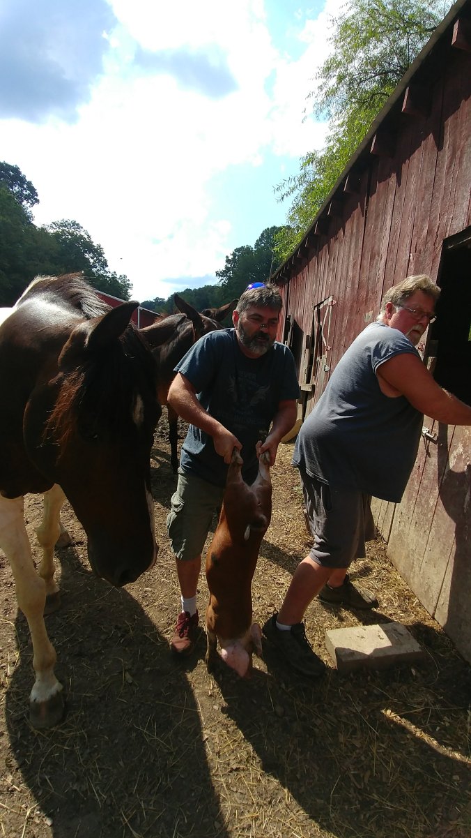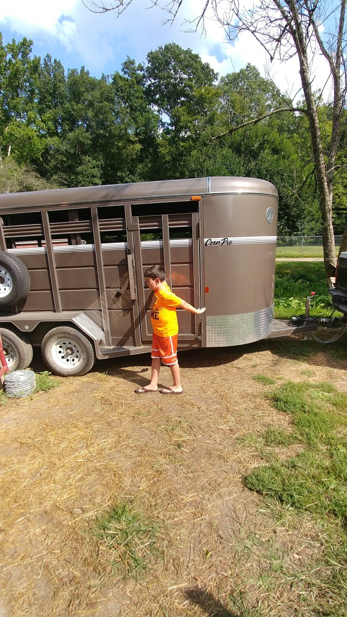 I manned the big gate to keep the horses and mule from getting loose, and Jake was in charge of the trailer door.