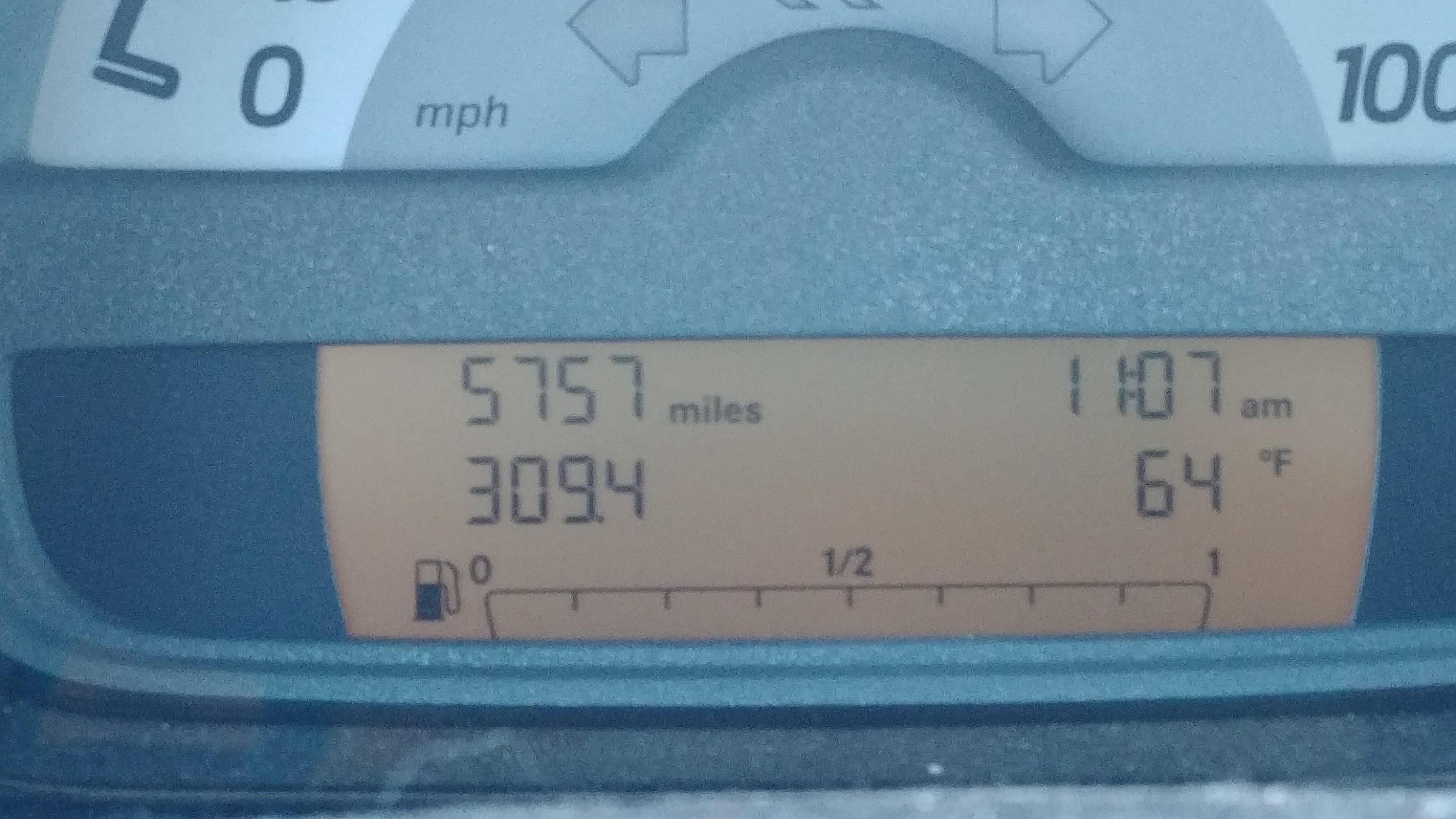 Ugh. At least I know why the mileage was so bad this time. I’ve realized over the course of the past 9 months that this little car is horrible on gas mileage when it idles. After a doctor appointment last week in the city, I sat in traffic for at least twenty minutes to move approximately three tenths of a mile to the exit!