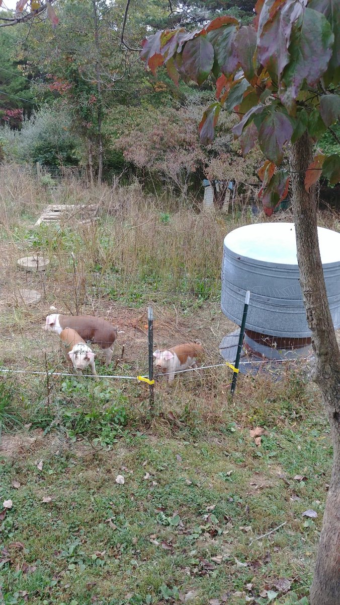 The hog feeder we bought in Indiana is in with the pigs; Ted put 1200 pounds of feed in it, and it had room for probably 600 pounds more.