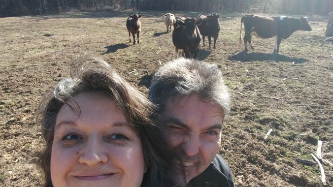 We came through the back gate of the pasture when we finished, and the cattle were thoroughly confused.