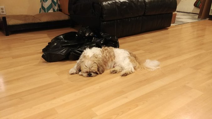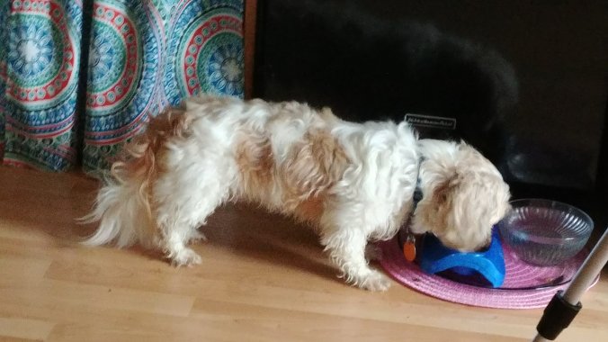 Gramma spoiled this little dog rotten for 10 years. He wouldn’t touch dog food at her house. He decided he likes the kind that Smidge has in her bowl though so he’s eating (a lot)!