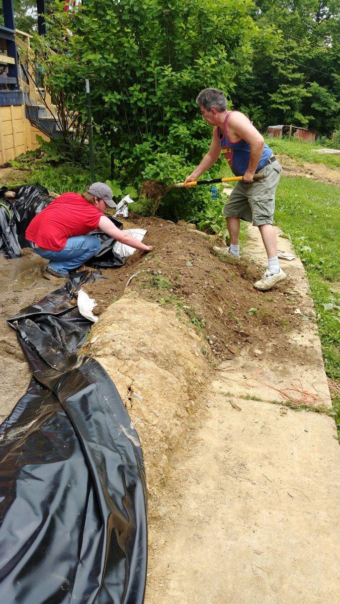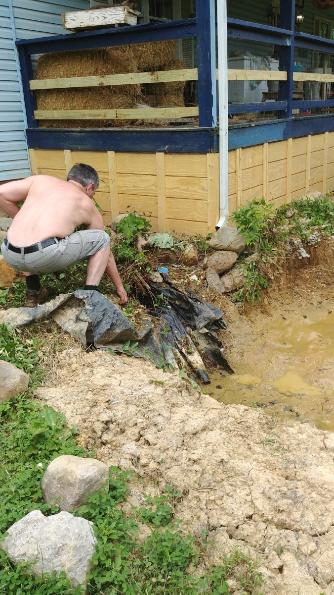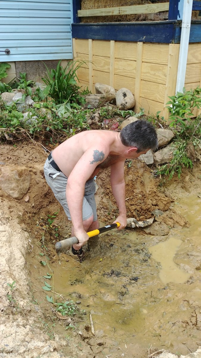 Ted and I got up early this morning and headed out to the concrete place to get a load of sand. Then we had a quick breakfast at the truck stop, and we were on our way back. Ted and John started working as soon as we got home, and they are still out there at it.